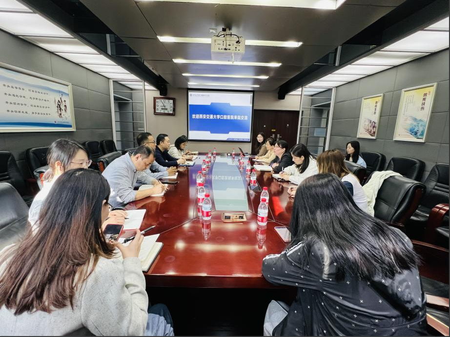 2024年4月17日,西安交通大学口腔医院财务部王斌部长一行7人来我院参观交流。会议由财务部张卫平主任主持,王铠副主任及业务骨干参会。