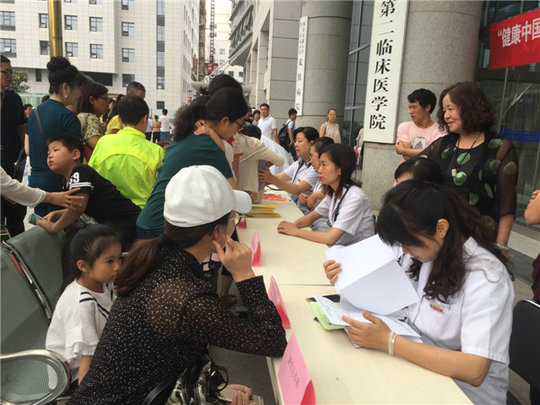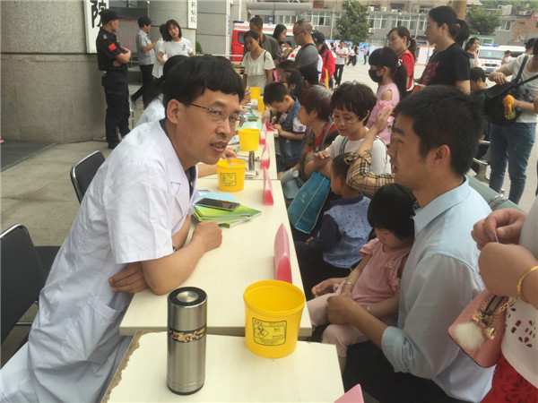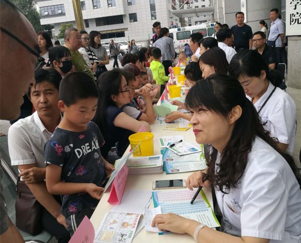 义诊活动由三个科室十二个专业的十二位医生教授在西安交通大学第二医院门诊大楼前一字排开,形成了义诊“长龙”阵。儿童神经康复专科王雪莹主治医师、儿童血液肿瘤专科徐尔迪副教授、儿童内分泌遗传代谢专科尹春燕博士、儿童呼吸哮喘专科李静副教授、儿童保健专科刘海燕主治医师、新生儿专科高琼主治医师、儿童泌尿外科吴宣林副教授、儿童胸腹外科李鹏教授、儿童普外科郑百俊主治医师、儿童肿瘤外科王怀杰主治医师、新生儿外科潘伟康副教授和儿童心理行为王亚萍教授为孩子了提供了专业的全面的诊疗,为儿童的健康保驾护航。