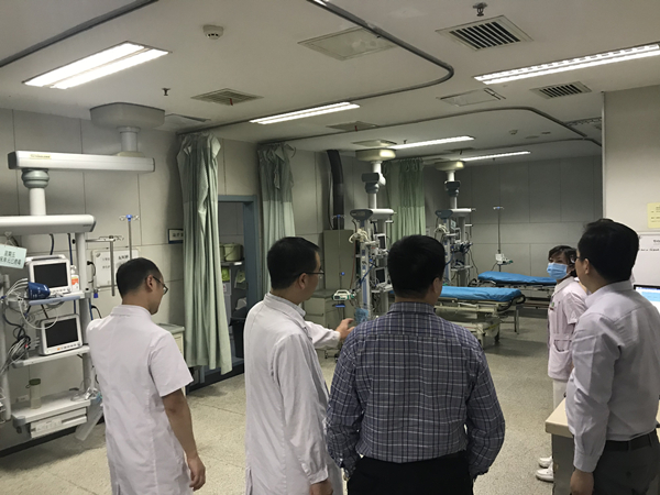 首先,在裴主任、科委会成员及科室业务骨干的陪同下,方教授参观了急诊抢救间、留观室、输液室、普通病房及EICU;每到一处,方教授都认真询问、仔细参观,对我们在现有较为局限的物理条件下所取得的成绩表示了充分的肯定和称赞,对各区域的不足和改进之处也给出了详细的建议。参观结束后,裴主任主持开展交流会;会上,方教授在听取了裴主任对科室的介绍后,先简要分析了目前国内急诊科发展现状、面临的问题及国家对于急危重症医学的相关政策,然后结合我院急诊科的具体实际提出了一系列的富有建设性的建议,并结合其经验对具体问题进行了高屋建瓴的剖析,最后,方教授对裴主任盛情邀请表示感谢,并祝愿我院急诊科取得更好的成绩。
