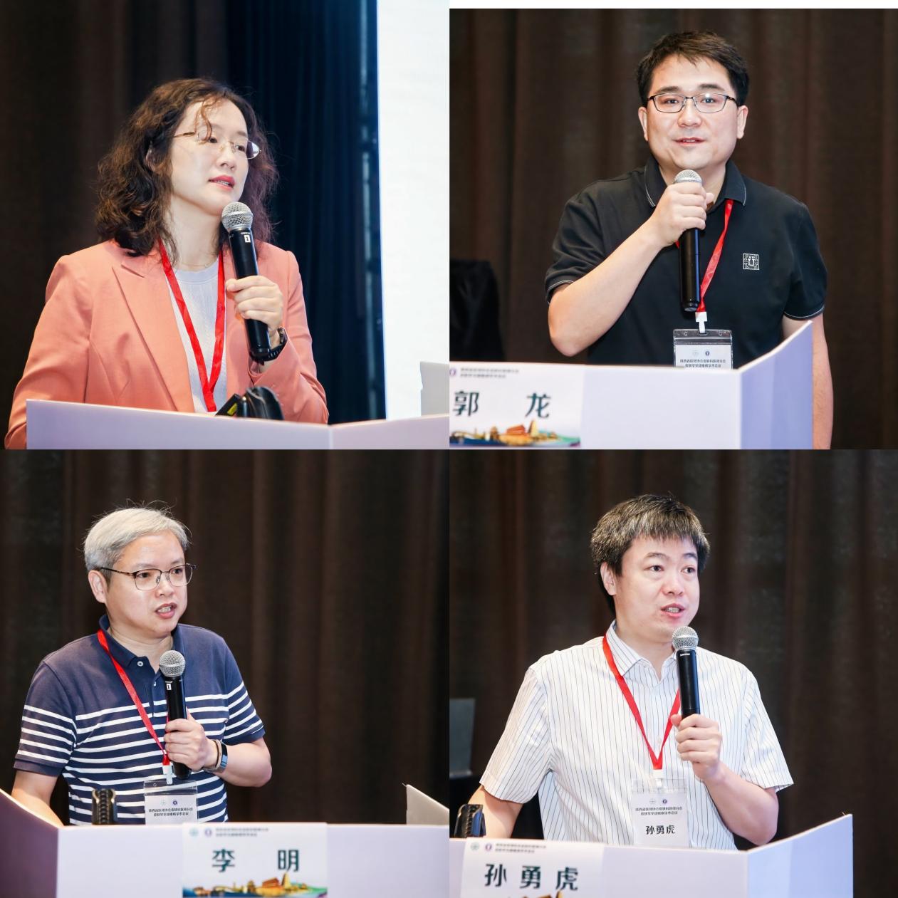 (上午上半场讲者,左上为汪旸教授,右上为郭龙教授,左下为李明教授,右下为孙勇虎教授)