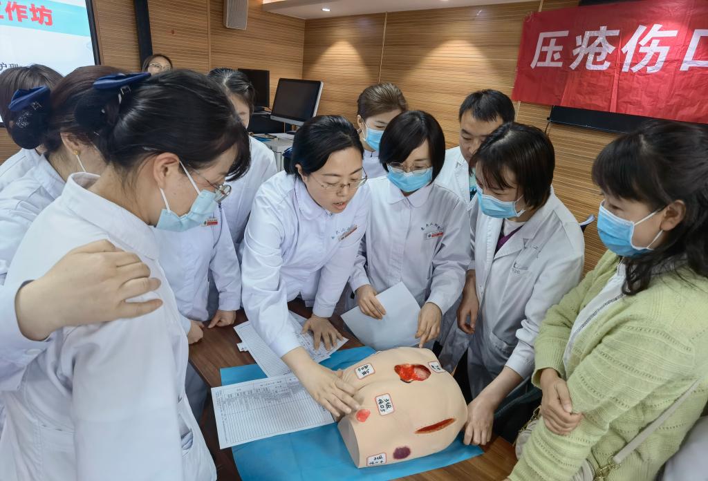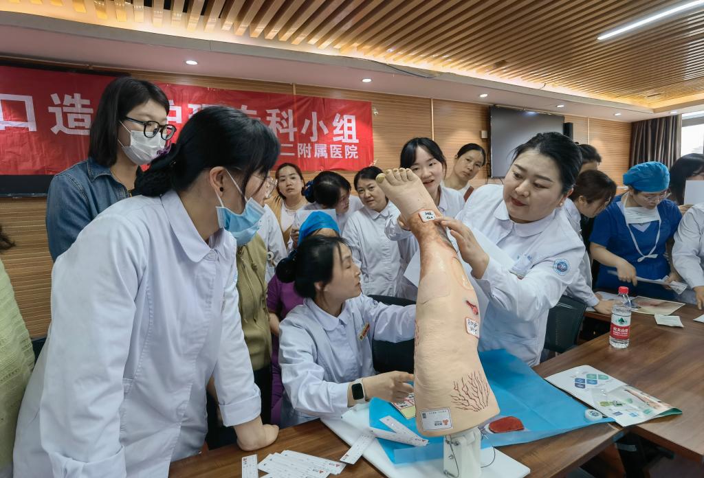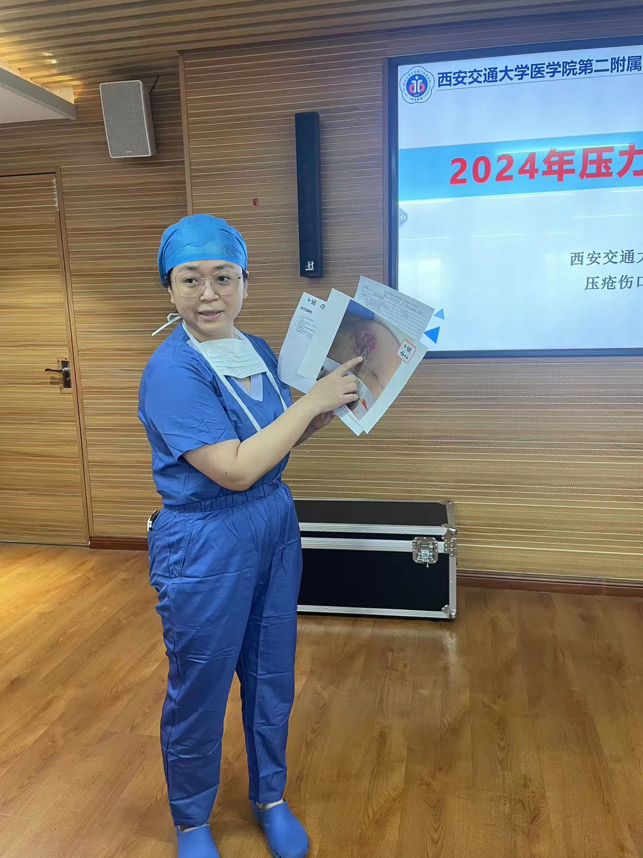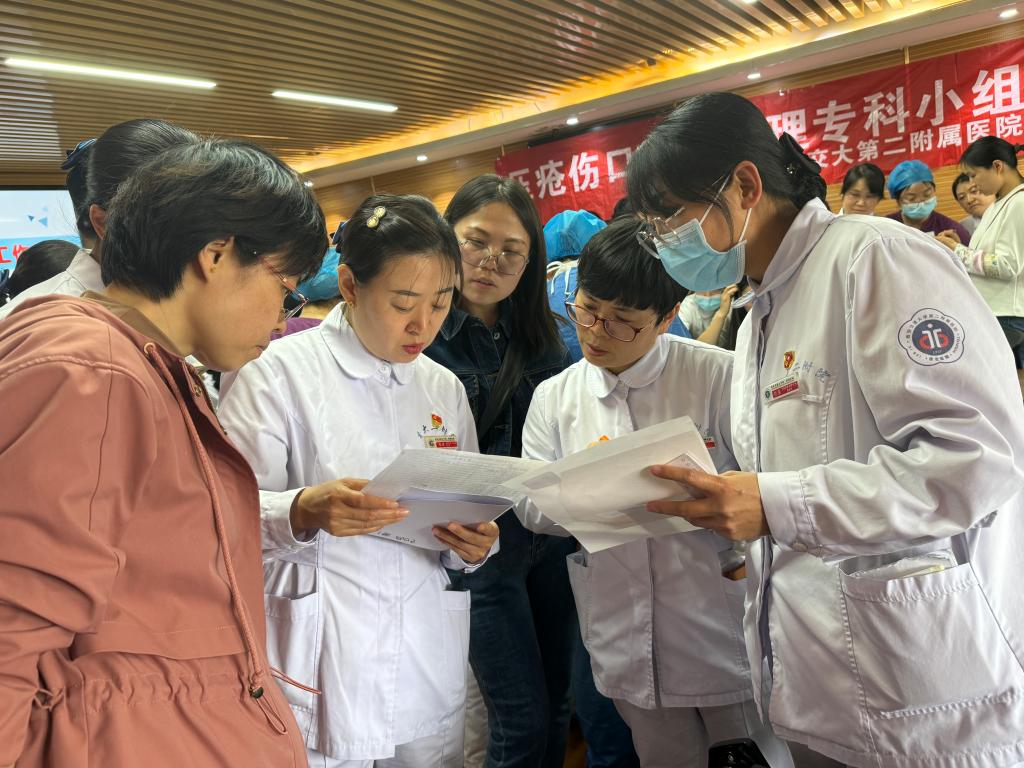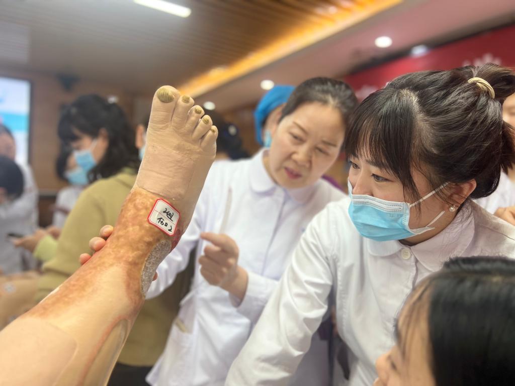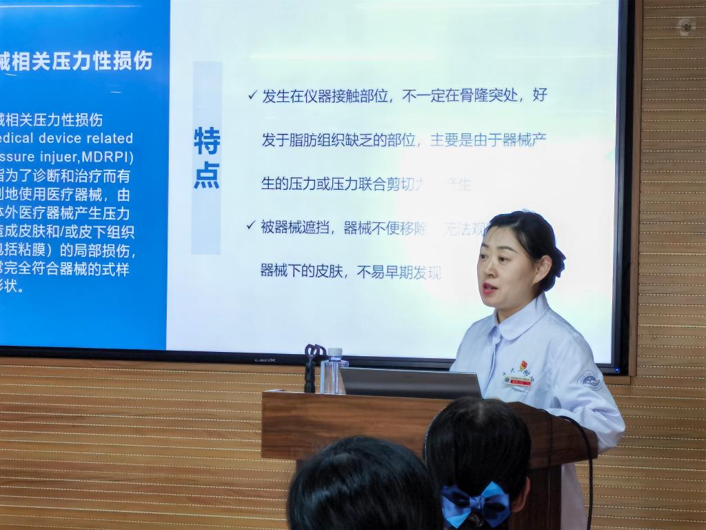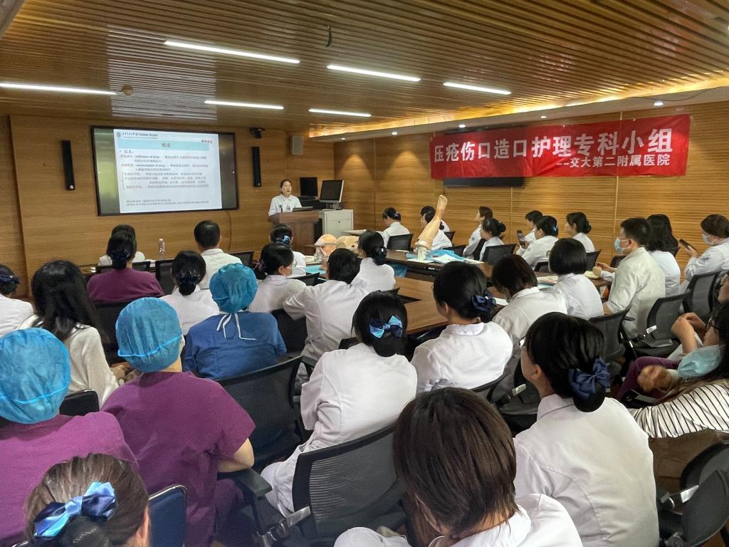 为了提高我院护理人员压疮伤口同质化、规范化管理水平,在护理部组织下,压疮伤口造口专科护理小组组长王金娟副护士长及小组核心成员经过精心策划与充分准备,于2024年4月9日下午,在麻醉科6楼会议室举办了主题为“皮肤安康,一起守候”的小组学术活动。护理部姚聪副主任莅临本次会议并讲话,会议由小组核心成员新生儿科帖迎春副护士长主持,小组核心成员、各科联络员共计60余人参加了此次活动。此次活动内容丰富,包括压疮专场及伤口专场的理论知识讲,以及压疮伤口工作坊。