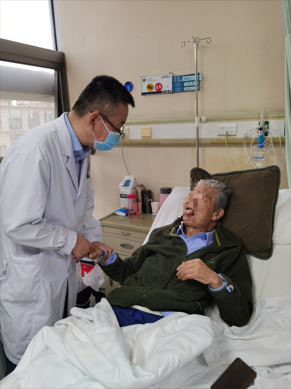 在查房过程中,杨成志副主任医师还结合患者的舌象,现场向普外科的医护团队进行了辨证讲解。普外科陆宏伟副主任表示:中医的辨证施治既准确又灵活,奥妙无穷,对诊治许多疾病,有其独到的特点。现在“西学中”已成为一种潮流,我本人也报名了“西学中”培训班,希望今后可以运用中医造福患者。