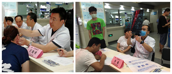 7月27日上午,我院门诊大厅内人头攒动,“世界头颈肿瘤日”大型义诊活动顺利举行,耳鼻咽喉头颈外科病院任晓勇教授、孙斌副教授、罗花南副教授、杨慧副主任护师、杜小滢副主任护师、闫静主治医师,肿瘤病院放疗中心马红兵教授、王中卫副教授,病理科杨军教授等多学科联合的专家团队为络绎不绝的患者进行了耐心会诊及咨询,收到良好效果,受到患者的一致好评。