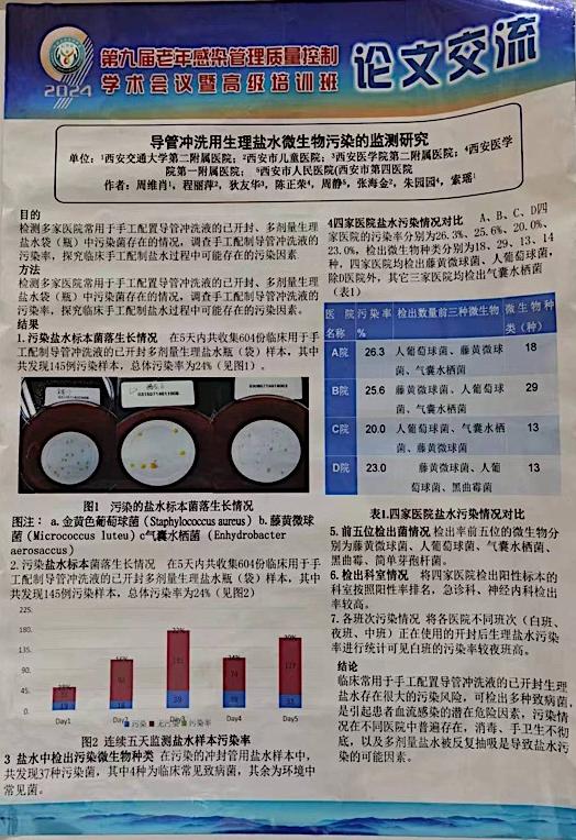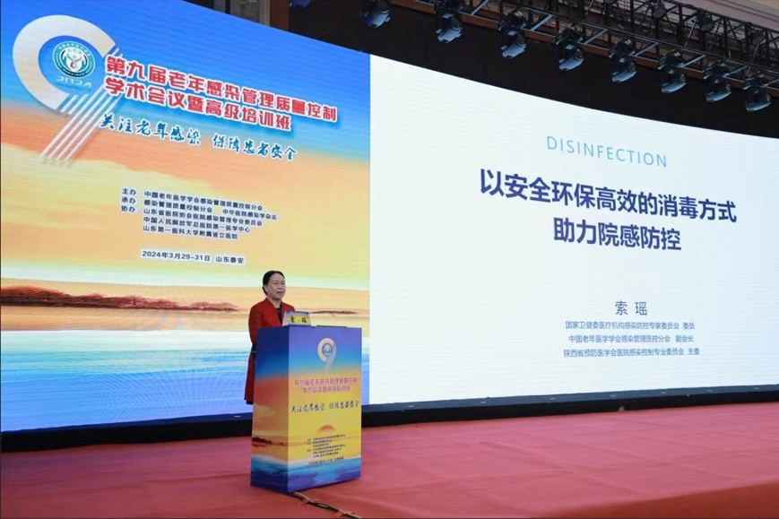 本次盛会吸引了全国2000余名相关专业人员参加,我院感控领域全国知名专家、中国老年医学学会感染管理质量控制分会副会长索姚教授进行了题为“以安全环保高效的消毒方式助力院感防控”以及“七恒空间在医院及康养中的应用前景”的专题报告与培训。检验科周维肖团队进行了“导管冲洗用生理盐水微生物污染的监测研究”论文壁报交流。