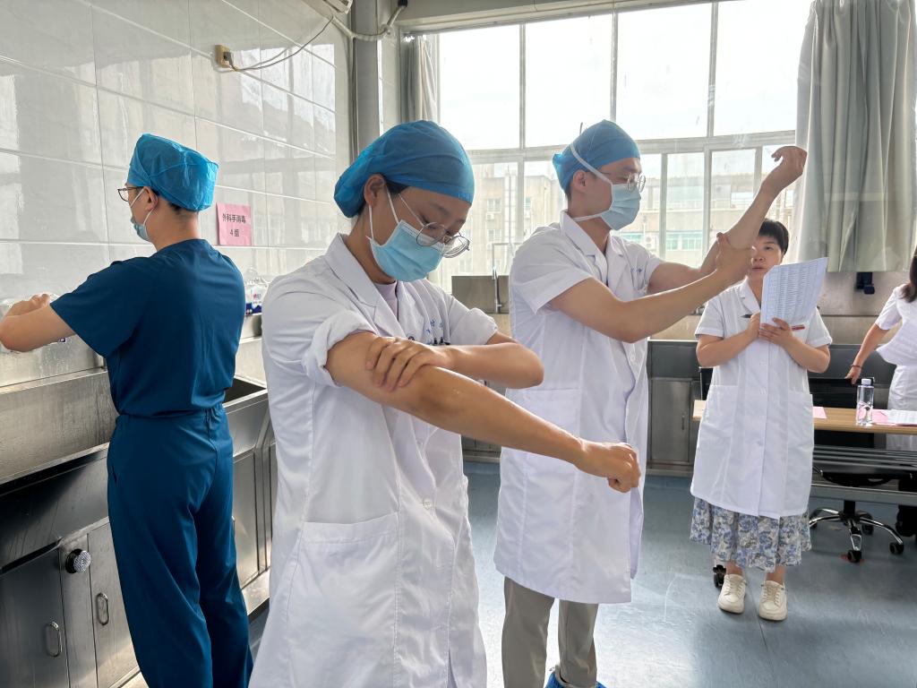 本次决赛设置手卫生知识理论考场与外科手消毒操作考场,旨在全面考察选手的理论素养与实操能力。此次比赛特别邀请了麻醉手术科赵丽燕护士长、院感办主任张晨、李金娜主任护师担任评委。比赛现场参赛队员精神饱满、沉着冷静,熟练的操作技能和扎实的理论基础,展现了我院医务人员良好的素养。最终,35名医护人员摘桂,获得我院“手卫生之星”殊荣。