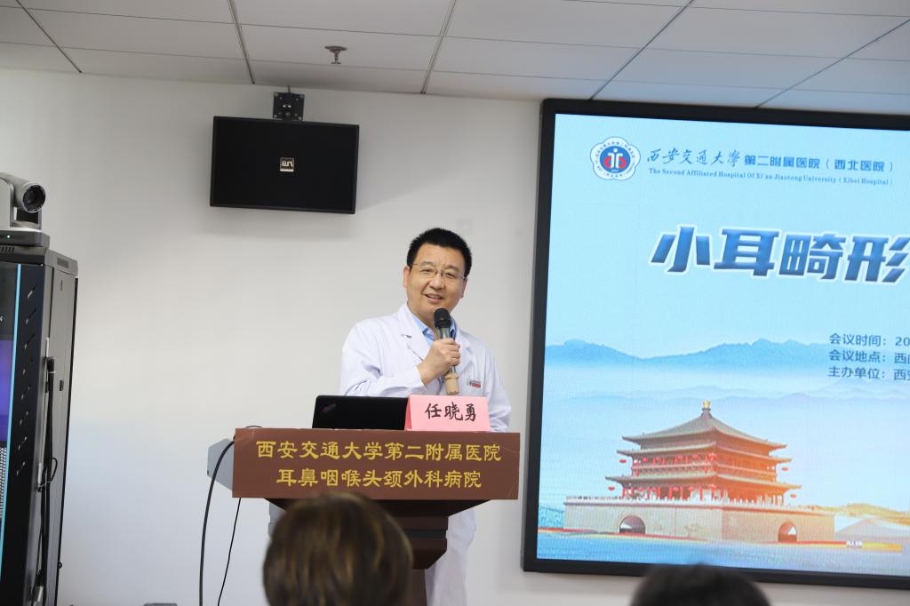 2024年5月10日上午,西安交通大学第二附属医院“学术繁荣”系列论坛之耳鼻咽喉头颈外科首场——小耳畸形-全耳再造论坛在我院成功举办。会议荣幸地邀请到上海复旦大学附属眼耳鼻喉科医院耳鼻喉科研究院副院长、眼耳鼻整形外科主任张天宇教授及其团队李辰龙教授,与我省及洛阳院区相关专业人员线上线下3千余人进行了小耳畸形—全耳再造前沿技术的深入探讨。