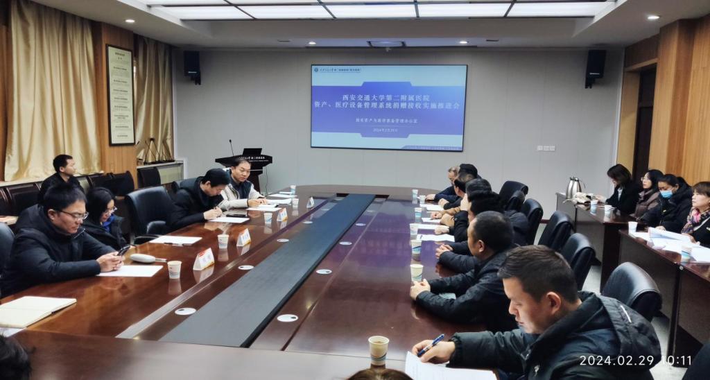 2月29日上午,医院资产、医疗设备管理系统捐赠接收实施推进会在宗濂会议室隆重举行。李文博总会计师、刘明副院长、种铁副院长等院领导以及各相关部门负责人和工作人员20余人参会,会议由种铁副院长主持。