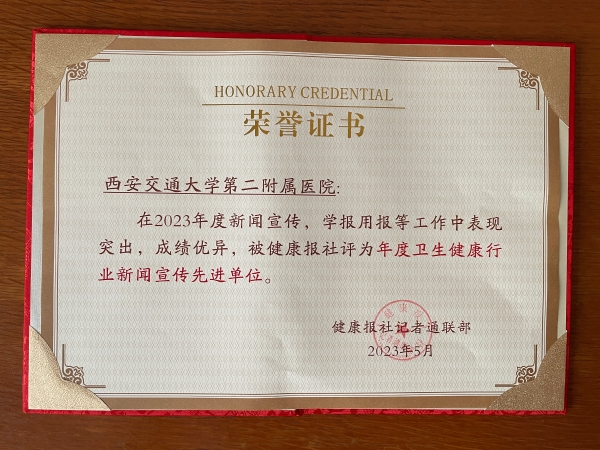 二附院长期积极参与《健康报》社的各项宣传活动,持续不断为健康报社提供高质量稿件,此次荣誉的获得,是对二附院积极开展卫生健康宣传工作的肯定。二附院也将紧密配合国家级媒体平台,全方位普及医学知识,向广大民众传达前沿医疗技术,紧跟时下热点,发布医院动态新闻讯息,全方位打造医院品牌。