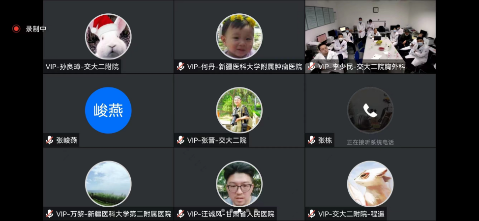 4月3日下午,我院胸外科连线新疆、河南、杨凌三地胸外科专家同道,成功举办“肿瘤云学院—肺癌靶向治疗新进展”线上会议。本次会议采用腾讯会议线上参会形式,会议由胸外科李少民主任主持,胸外科全体成员参会,与兄弟单位的各位专家大咖在轻松愉快的氛围中分享精彩内容,交流最新进展。