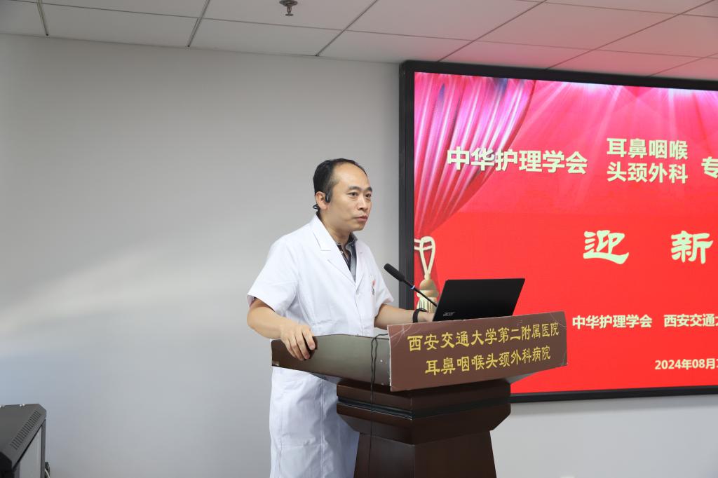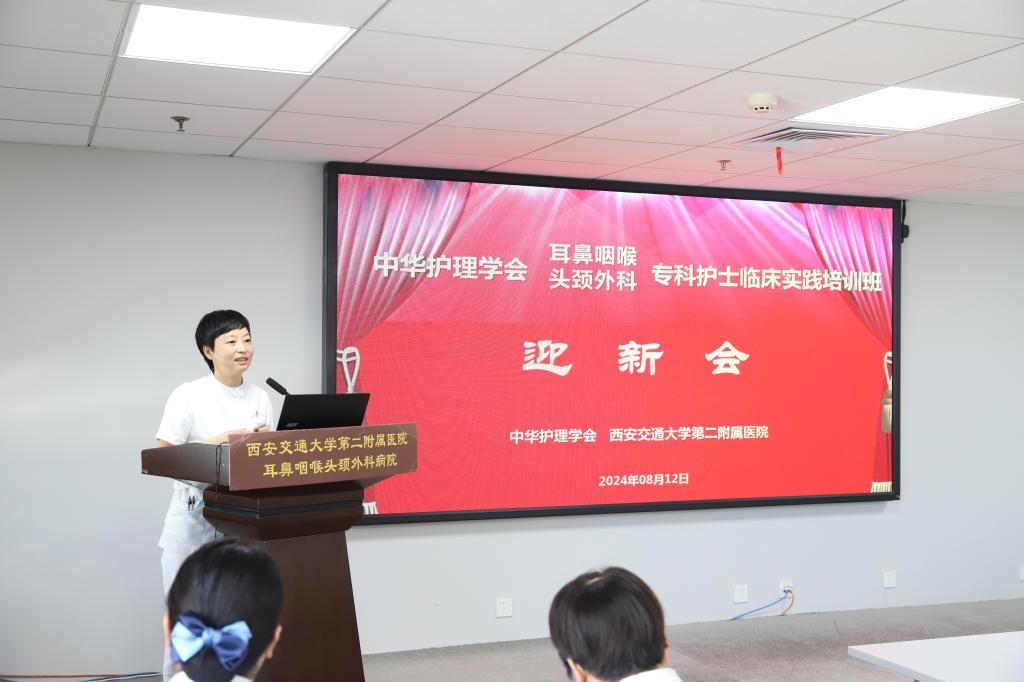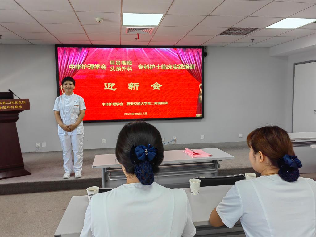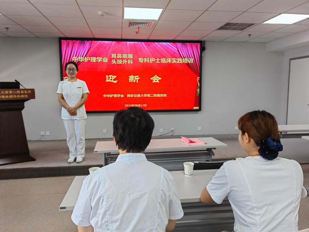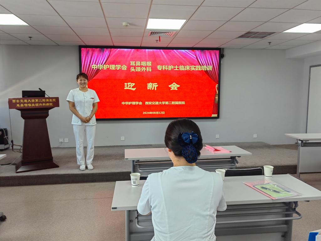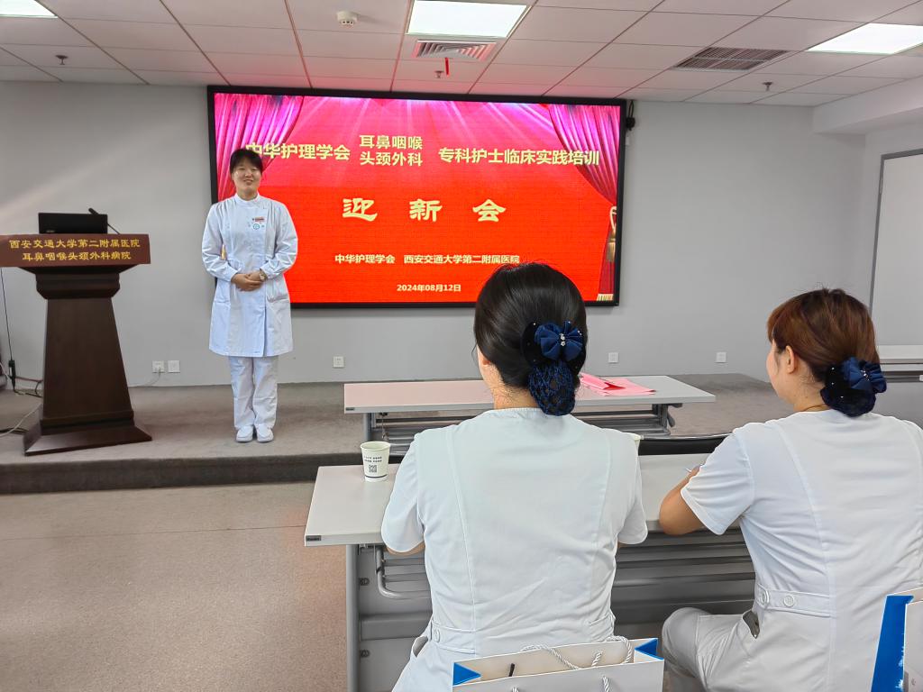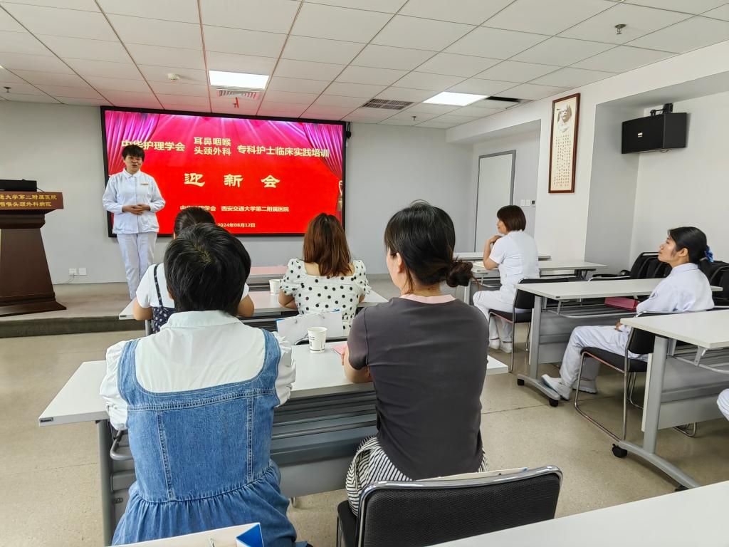 2024年8月12日上午,西安交通大学第二附属医院耳鼻咽喉头颈外科病院作为中华护理学会耳鼻咽喉头颈外科专科护士(京外)实践基地,在会议室举行了第五期的学员迎新会。护理部姚聪副主任、病院孙斌副主任、基地负责人杨慧护士长、病院杜小滢和邵娜2名副护士长及培训督导、带教老师参加了了会议。病院李静静副护士长主持了此次迎新会。