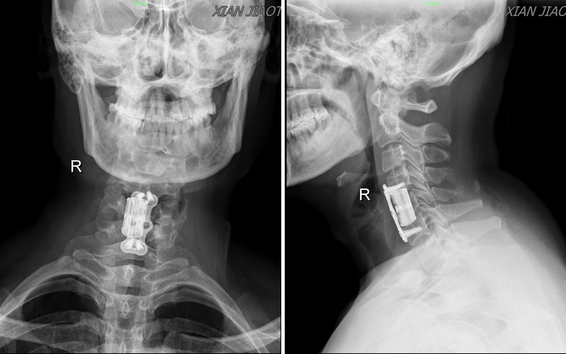 来自陕西省渭南市的许某被头晕症状折磨了8年之久,犯病时伴有濒死感、心慌、胸闷、气短、大汗,偶尔伴有耳鸣及听力减退等症状,十分痛苦。反复就诊于不同级别的医院,要么被误诊为颅内疾病、冠心病、或高血压等疾病,结果治疗无效;要么确诊为颈椎病,但因未接受手术治疗,导致症状反复无法缓解。1月前患者怀着忐忑的心情就诊于我院神经内科,展淑琴主任团队快速给患者完善了颅脑MR 3T平扫、头颅MR血管成像、颈部MR增强血管扫描等专科检查,均未见明显异常(图1),考虑该患者头晕可能与颅内疾病关系不大,于是联系耳鼻喉科、骨科中心骨病与创伤病区等多学科会诊。张纯主任通过详细询问病史、认真查体后初步考虑该患者头晕可能系颈椎病所致,并嘱患者完善颈椎MRI及颈椎正侧双斜位片检查进一步确认。经过仔细查阅加拍的影像学检查,张纯主任发现,患者颈4/5、颈5/6椎间盘突出严重,相应椎管狭窄;最为重要的是颈椎双斜位片上左侧颈5/6钩椎关节增生明显(图2),且从MRI轴位片上可以看到椎动脉在颈5/6层面存在受压(图3),于是向患者告知病情,并果断建议其手术治疗。患者饱受头晕困扰,鉴于张纯主任每次交流中均展现出的专业素养和工作态度,患者毫不犹豫地选择手术治疗,遂转入骨科中心骨病与创伤病区。经过骨三科护理团队专业的术前准备和医生团队详细的术前规划,在麻醉团队、手术护理团队的保驾护航下,张纯主任主刀,高宗强主任医师及李永伟博士协助,为患者实施了颈椎前路椎管减压术,术中张纯主任仔细操作,反复检查椎动脉减压效果,直至减压满意。术后3天给与患者复查术后X线片,显示非常满意(图4)。患者下地活动后发现头晕症状完全缓解,出院后1周还特地与张纯主任取得联系,告知“现在一点都不晕了”。医生的专业判断、果断决策及精准手术,加之患者的高度配合,使得手术得以顺利、成功进行。