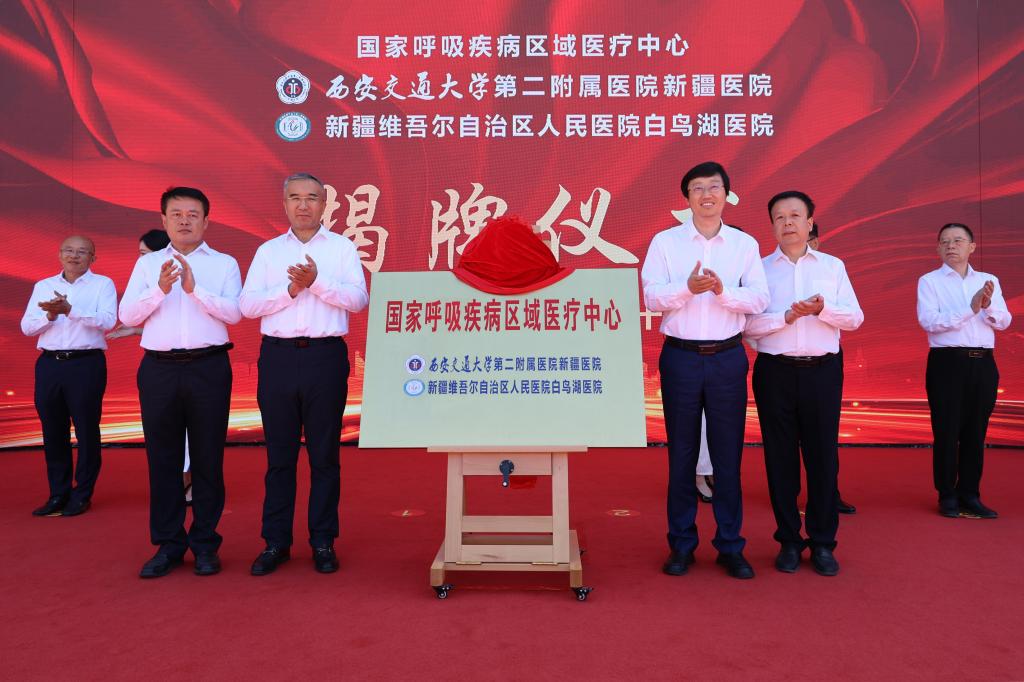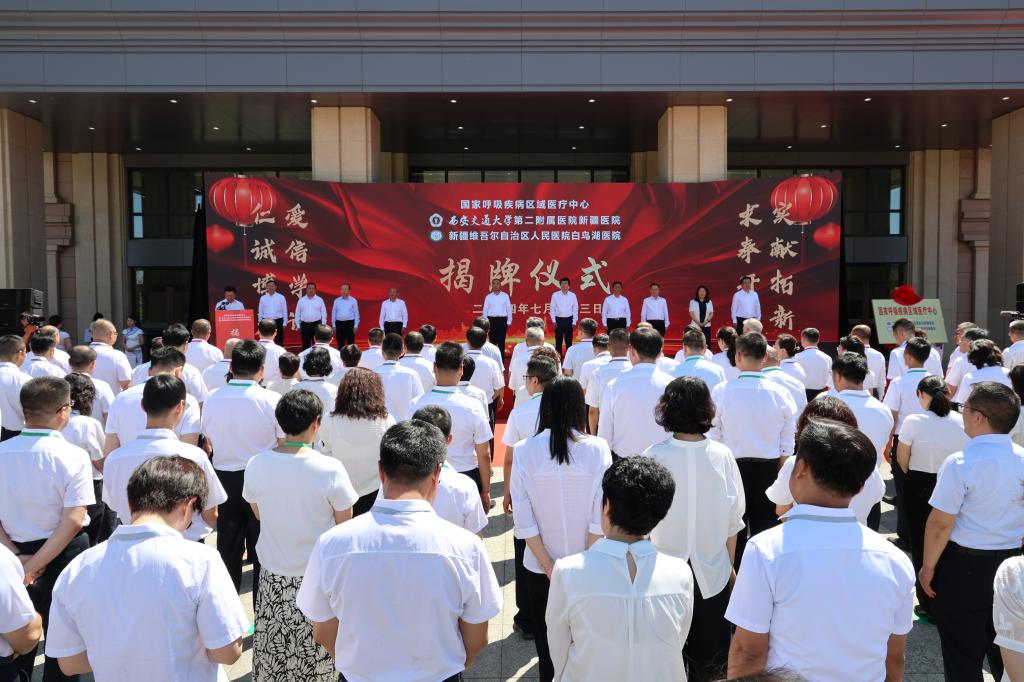 为贯彻落实党的二十届三中全会精神,积极把握国家发展新的重大机遇,以改革创新为动力切实推动优质医疗资源扩容和均衡布局,以人民健康为中心全面推进医疗保障体系建设,7月23日,国家呼吸疾病区域医疗中心西安交通大学第二附属医院新疆医院、新疆维吾尔自治区人民医院白鸟湖医院 (以下简称:新疆医院)揭牌,陕疆携手在丝绸之路经济带核心区医疗服务中心建设进程中写下浓重一笔。