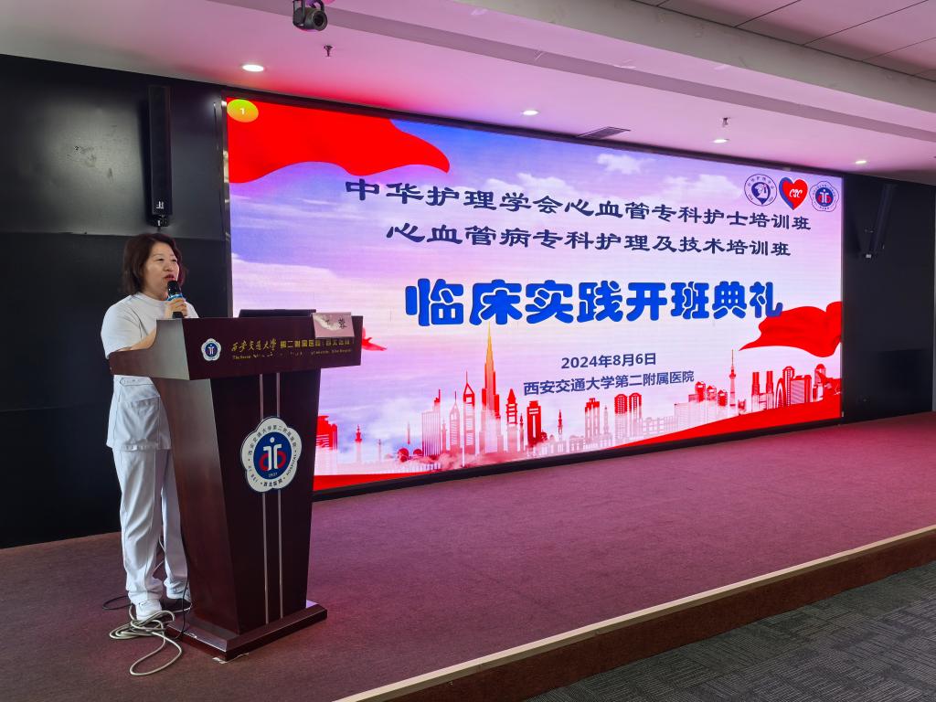 2024年8月6日上午,中华护理学会心血管专科护士培训班和心血管病专科护理及技术培训班临床实践开班典礼在西安交通大学第二附属医院大明宫院区顺利召开。护理部姚聪副主任、心血管内科高登峰副主任、心血管内科各病区护士长、带教老师以及培训学员共同参加了开班典礼。开班典礼由培训基地负责人王蓉护士长主持。