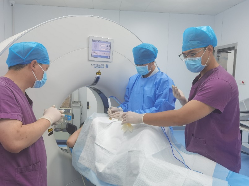 近日,医学影像科在张月浪主任和丁墩副主任的精心规划与全力支持下,成功引入并实施了一系列创新性诊疗技术——CT引导下的肺结节穿刺活检、术前定位、与射频消融术,这一系列技术的实施不仅显著提升了我科在院内的影响力,更为广大患者带来了新的希望。