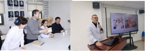 耿松梅主任介绍了参与捐赠仪式的老教授及家属,感谢老教授对科室发展的贡献与付出,也感谢老教授家属对科室发展和文化建设的支持。安金刚副教授介绍了皮肤科的发展历程,展示了老教授们的工作场景和取得的成就,参与仪式的家属和教职工无不动容,不仅感慨于早年间工作条件的艰苦,也为在老教授带领下皮肤科所取得的成绩感到来之不易。