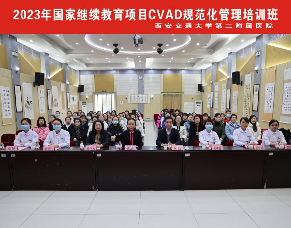 12月26日上午,由我院护理部主办的2023年国家级继续教育项目《CVAD规范化管理培训班》在多功能厅举行开班典礼。陕西省护理学会静脉治疗专委会张敏主委、西安交通大学第二附属医院副院长种铁教授、护理部杨惠云主任、静疗专科小组组长张瑞丽护士长、静疗专科小组核心成员及来自全省各级医院的50名学员参加了开班典礼,此次典礼由我院护理部姚聪副主任主持。