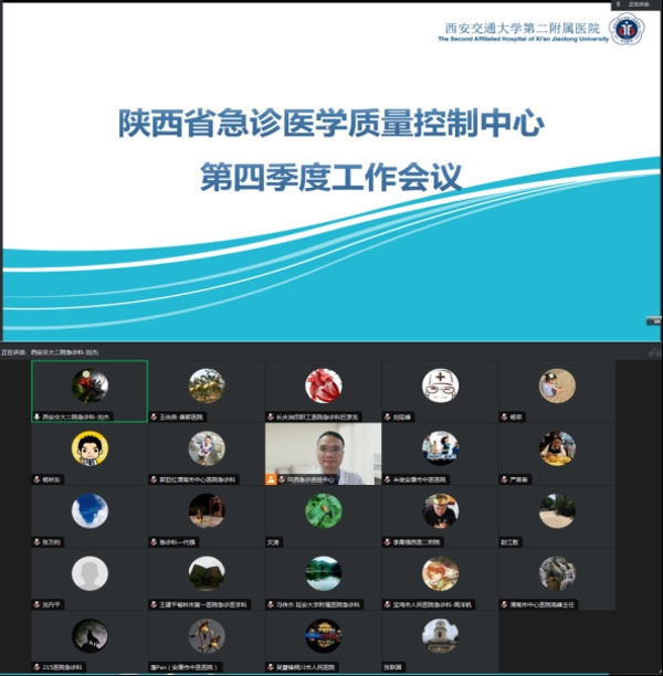 近日,国家急诊医学质量控制中心(以下简称“国家急诊质控中心”)举行了第四季度工作会议及全国“哨点医院”培训会议。为传达国家急诊质控中心有关工作会议精神、解读“哨点医院”工作重点,及安排陕西省急诊医学质量控制中心(以下简称“陕西急诊质控中心”)有关工作,陕西急诊质控中心于12月21日线上举行第四季度工作会议。陕西省各地市级急诊质控中心主任及秘书、各“哨点医院”急诊科主任及联络人参会。会议由省质控中心秘书张正良教授主持。