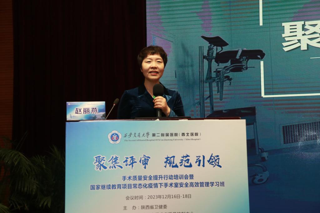 西安交通大学第二附属医院副院长张蓬勃讲到,举办本次培训班旨在以医院等级评审为契机,围绕提升医疗质量安全、提升手术质量安全的目标,为大家提供规范解读、制度培训、理念更新、工具应用、经验分享以及学术讲座,希望各位学员能学有所思、学有所获、学以致用,共同为改善患者就医体验、提升手术质量安全、促进健康中国做出贡献。