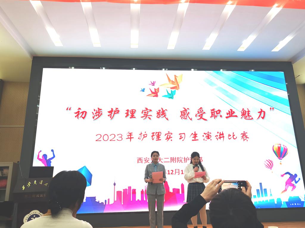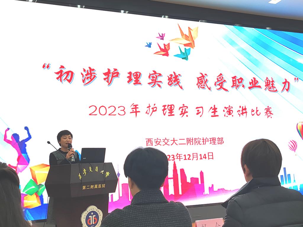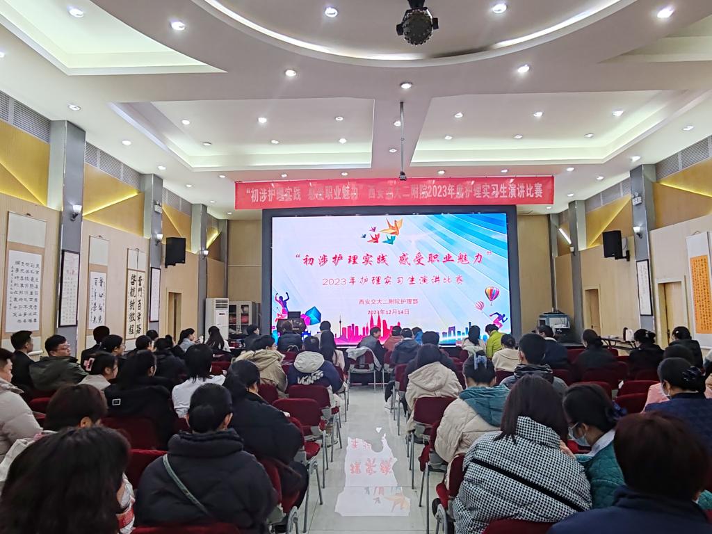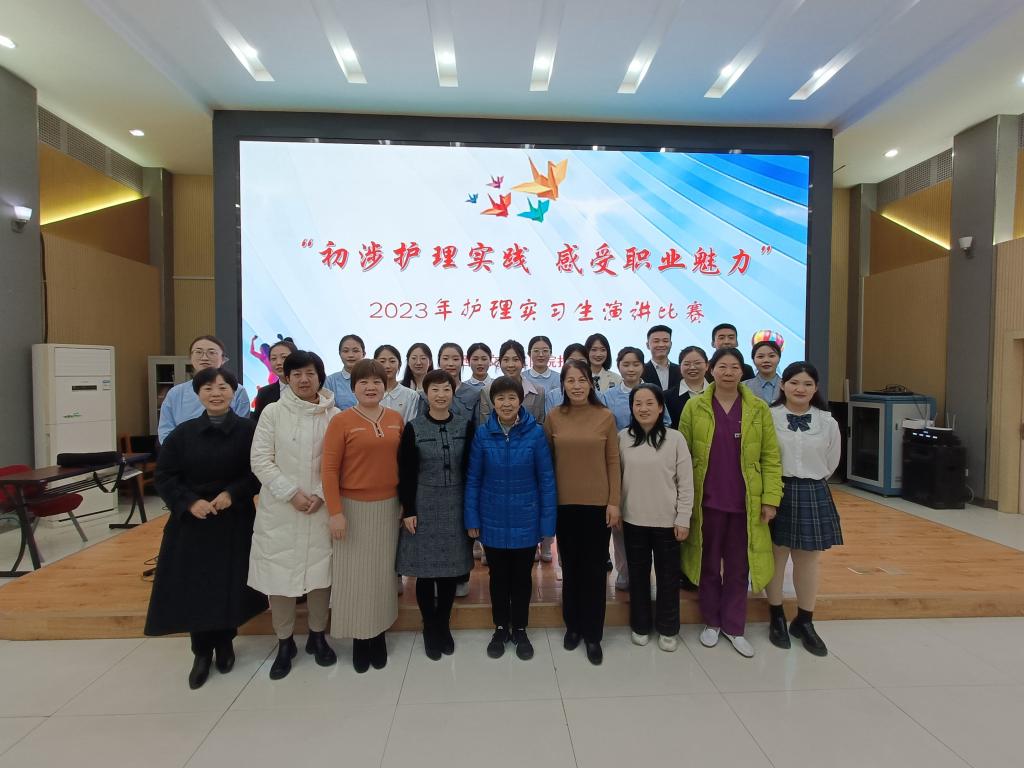 12月14日下午,护理部在多功能厅举办“2023年度护理实习生演讲比赛”。护理部孔德玲副主任、姚聪副主任、丁抗宁总护士长、王秀莹总护士长、徐岁云总护士长、杨会总护士长及妇产科赵艳护士长、重症医学科王利护士长担任评委,教学护士长、教学组长及指导老师100余人参加了会议,实习学生余婷婷、肖霜泽霖担任主持。