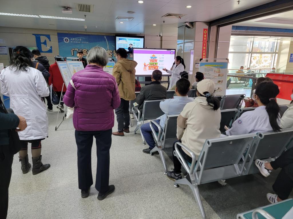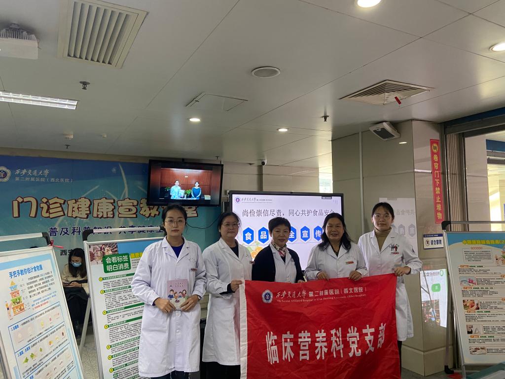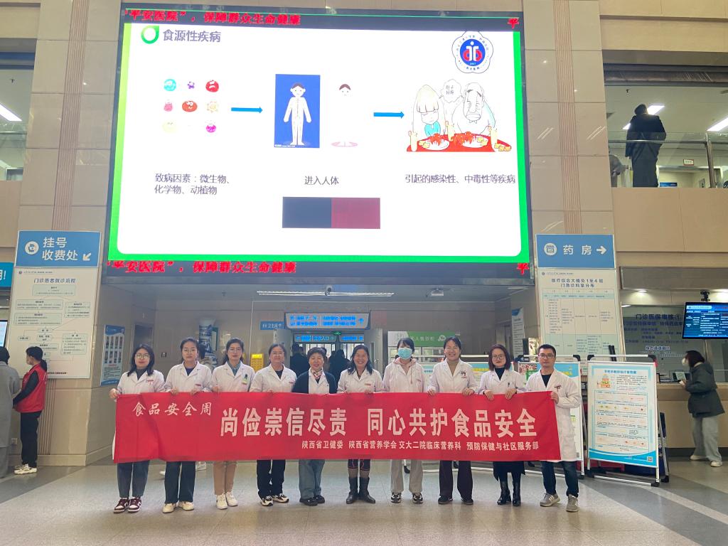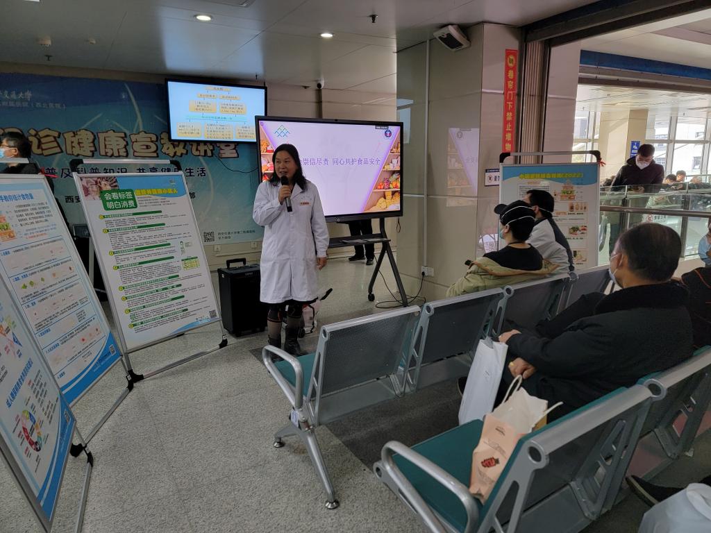 为了深入学习贯彻习近平新时代中国特色社会主义思想和党的二十大精神,认真落实习近平总书记关于食品安全系列重要论述和重要指示批示精神,突出宣传“尚俭、崇信、尽责、共治”主题,12月4日-8日交大二院临床营养科及预防保健与社区服务部联合开展了食品安全宣传周活动,通过在门诊大屏播放宣传视频、分发宣传折页、放置宣传展板、开展健康讲座等形式,强化食源性疾病防控、《中国居民膳食指南(2022)》宣传,弘扬中华民族勤俭节约的传统美德,倡导“厉行节约、反对浪费”的社会风尚,营造“浪费可耻、节约为荣”的浓厚氛围。