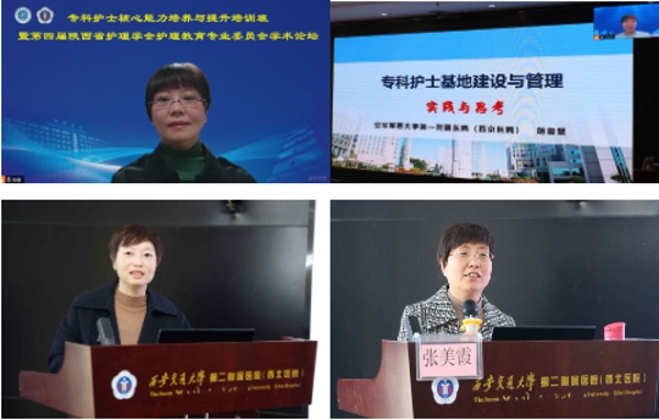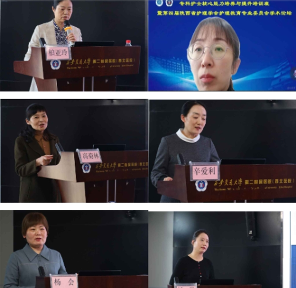 12月1日下午进行第二主题内容:基地品质化建设助推专科护士核心能力提升专题。分别由空军军医大学第一附属医院护士长柏亚玲主任委员讲授了《京外专科护士临床教学基地带教模式的探索与实践》,她提到我国专科护士的培养已初见成效,并详细介绍了京外专科护士培训的教学过程及教学模式,强调将理论与实践相结合的教学模式,培养优秀专科护理人才;西安交通大学第一附属医院高菊林主任护师分享了《血液净化专科护士基地管理实践》,需要从基地设备设施完善、人才梯队合理、医教研协调发展,持续质量改进体系完善,综合服务能力增强各方面严格要求; 西安交通大学第一附属医院护理部副主任李洁琼主任护师讲授了《专业组建设撬动专科护理发展》,通过开展学组建设,以专科学组的“小支点”积极撬起临床科室专科护理的“大格局”;我院杨峰副主任护师讲授了《康复专科护士教学基地品质化建设与管理》,杨护士长从康复护士教学基地如何品质化建设与管理展开讲授,使我们更加清晰地了解到基地多方位、多元化的建设;西安交通大学第一附属医院辛爱利副主任护师讲授了《基于胜任力导向的专科护士培养实践》,辛护士长提出要以岗位胜任力为核心,创新护理人才培养模式;我院消化内科护士长杨会 主任护师讲授了《螺旋式培训助力专科护士核心能力提升》,她从专科护士核心能力培养采取螺旋式培训方式,逐一细化讲解,层层剖析,学员们收获颇多,反响热烈。