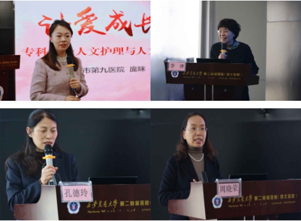 12月2日接着进行第三主题内容:专科护士核心能力创新培养与提升专题。分别由西安市第九医院护理部副主任庞咪副主任护师分享了《专科护士人文关怀与人文护理》,从人文关怀内化于心、外化于行、固化于制三方面逐一展开讲解,形象生动地将人文关怀具象化阐释;西安交通大学李津副教授讲授了《跨学科专科护理人才培养的探索》,她提到,护理是独立学科不是孤独学科,专科护理人才的发展与培养需要多学科的合作;我院总护士长周晓荣主任护师讲授了《专科护士循证科研护理能力实践与提升》,循证护理是向科学化护理迈进的重要方法和手段,护理人员要积极运用循证的科学方法去解决临床中的实际问题,提升专科护理能力,并推动护理学科发展。我院护理部副主任孔德玲主任护师分享了《专科护士沟通协作能力提升》,从临床案例中向我们讲述了良好的沟通能力助力护理工作,专科护士的发展也需要掌握如何提升沟通协作能力,提升专科护理水平;