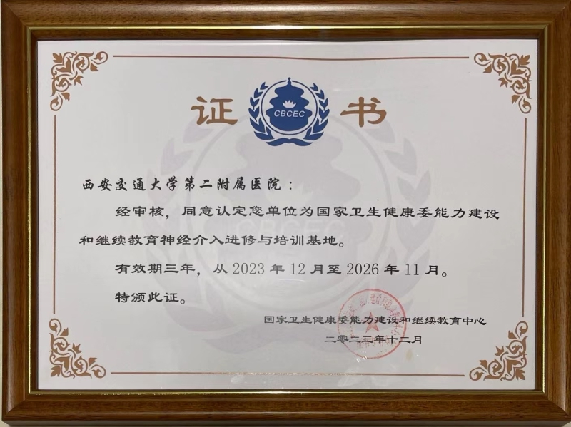 2023年12月1日,在广西南宁由国家卫健委能力建设与继续教育中心举办的2024神经介入专项能力提升项目继教工作推进会上,我院荣获国家卫生健康委员会第三批“国家神经介入进修与培训基地”。该项目由我院神经内科牵头、联合我院神经外科共同申报,由神经内科张桂莲主任负责,经过两年的“国家神经介入中心建设”成功跃入“国家神经介入进修与培训基地”,标志着我院神经介入诊疗水平已经跻身国内先进行列。至此,全国仅有52家医院的神经介入中心获此殊荣。