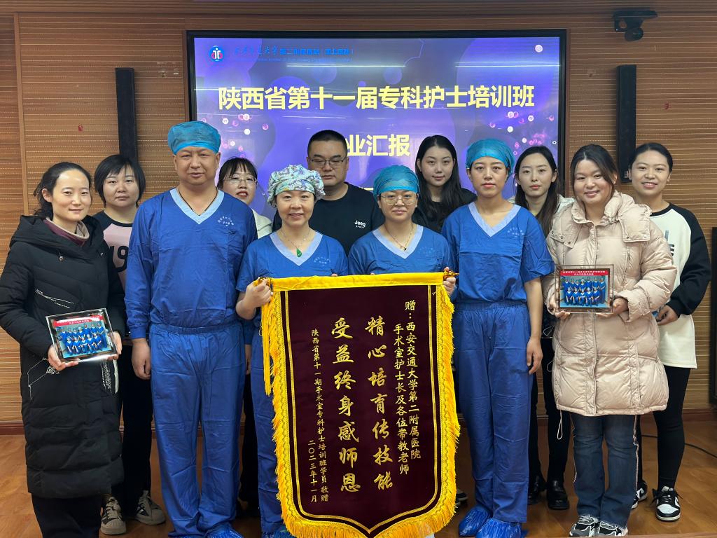 2023年12月1日上午,陕西省第十一届手术室专科护士培训班结业典礼在西安交通大写第二附属医院手术室举行。古茹副护士长主持,赵丽燕护士长、刘雄涛副护士长及教学组陈梦莎参加了本次活动。经过三周的临床实践学习及考核,全体学员顺利结业。