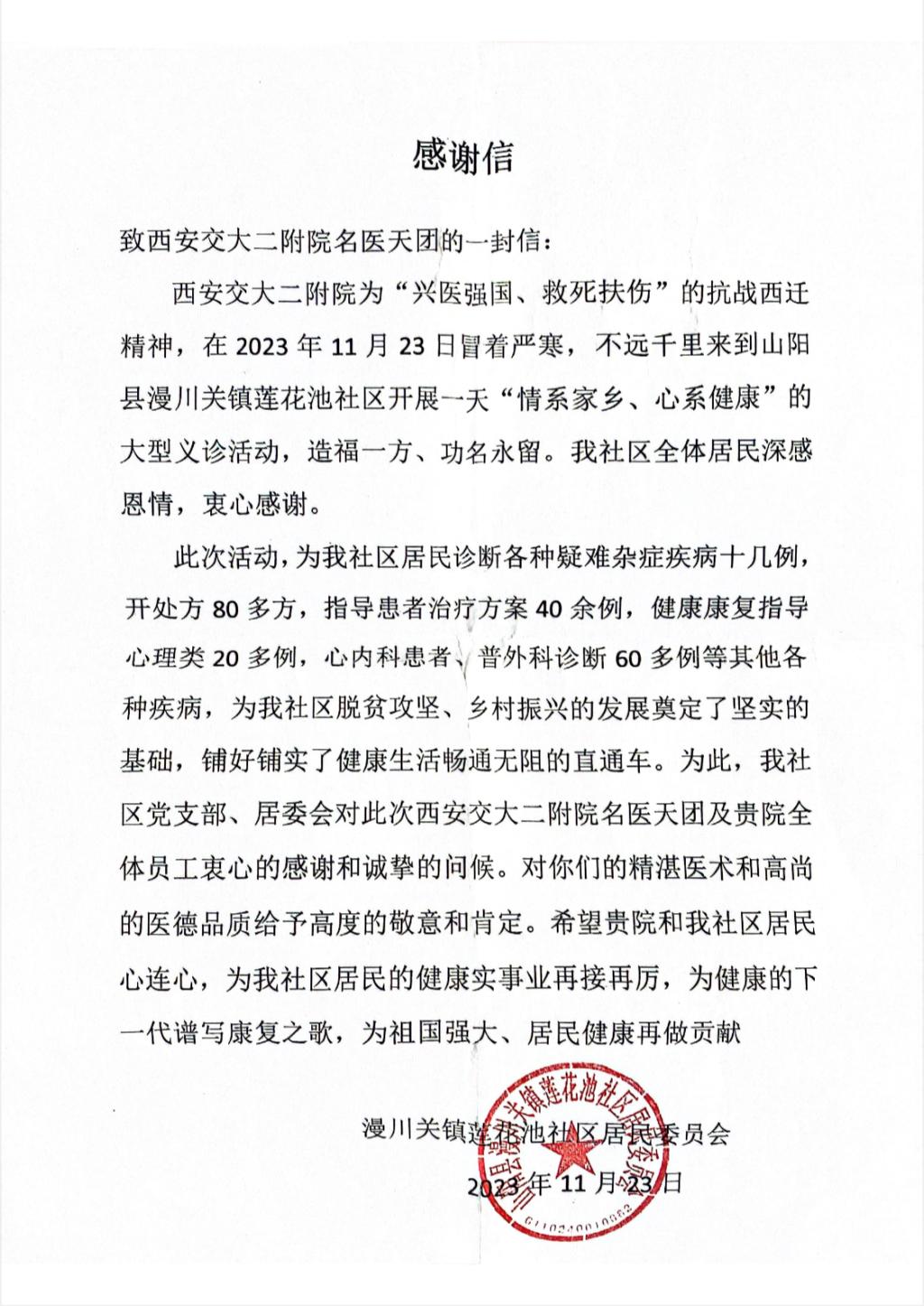 为弘扬“兴医强国、艰苦奋斗、精勤育人、救死扶伤”的抗战西迁精神、发扬我院“大医大义,为生命之光”的精神文化,助力优质医疗资源辐射和基层卫生健康事业的发展。西安交通大学第二附属医院名医天团11月23日走进山阳县,开展“情系家乡、心系健康”暖心巡诊活动。