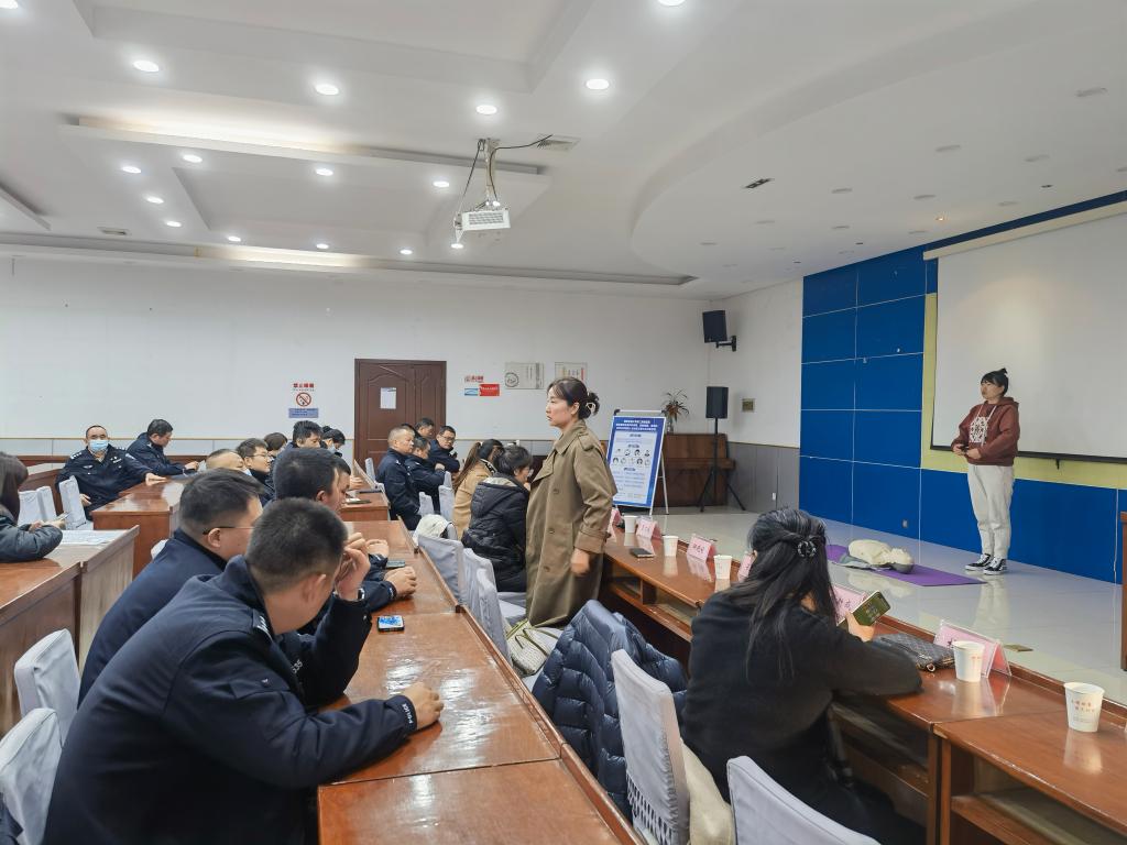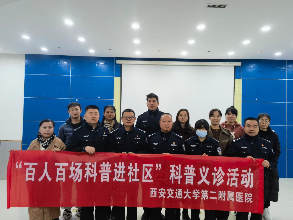 2023年11月24日下午,西安交通大学第二附属医院耳鼻咽喉头颈外科病院、皮肤病院及急诊科科普宣讲团进入新城区交警大队进行科普宣讲、急救实操演练活动。