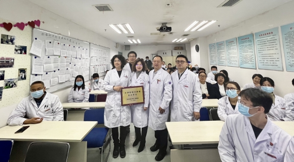 为进一步推进中西医协同“旗舰”医院试点项目建设,加强中西医肿瘤治疗领域的创新与合作,搭建肿瘤学术交流平台,11月21日,我院在综合楼11楼肿瘤科举行了中西医结合肿瘤诊疗中心挂牌仪式,参加挂牌仪式的有郭卉副院长、肿瘤科主任张淑群教授、中医科主任吴喜利教授、学科办主任纪泛扑教授、学科办副主任王岩副研究员,以及肿瘤科和中医科医护人员。由中医科安鹏副主任医师主持揭牌仪式。