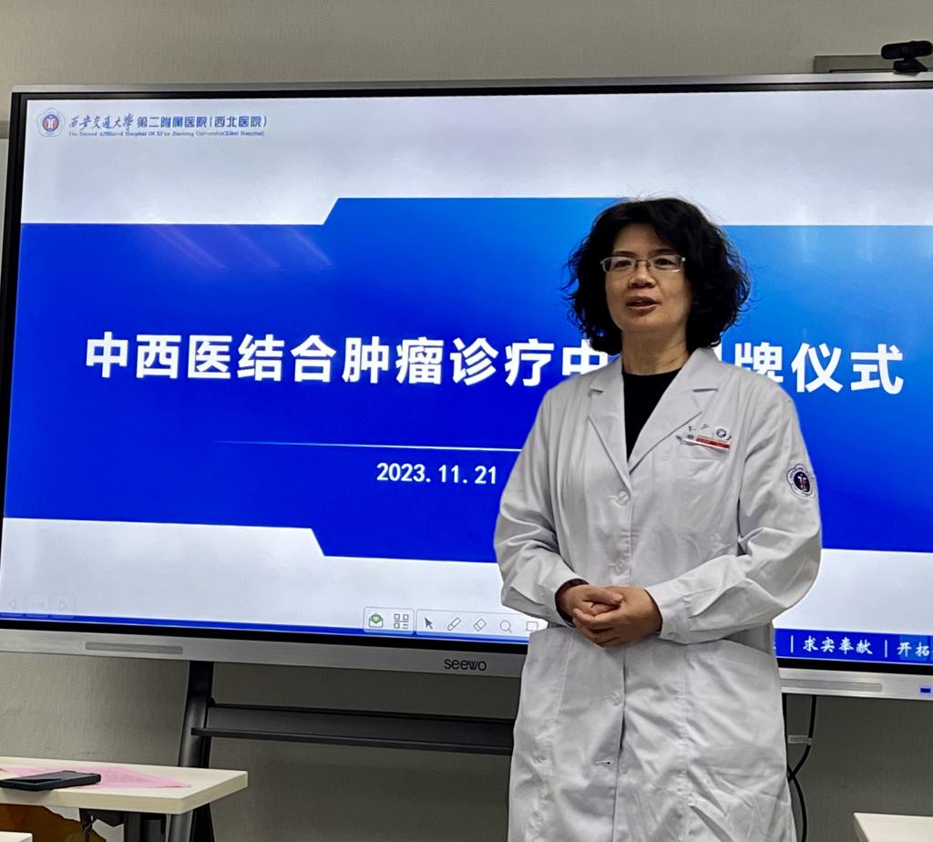 郭卉副院长在仪式上致辞,综合医院是提供中医药服务的重要平台,是中医药传承创新的重要阵地,鼓励科室间开展中西医协作,创新中西医结合医疗模式,建立中西医协同多学科诊疗体系。当下是中西医结合最好的协同时期,希望合作能从上到下落到实处,共同关注肿瘤综合治疗,建立合作的常规机制,进行定期沟通和成果分享,共同打造立足陕西、辐射西部、面向全国的高水平中西医协同“旗舰医院”。