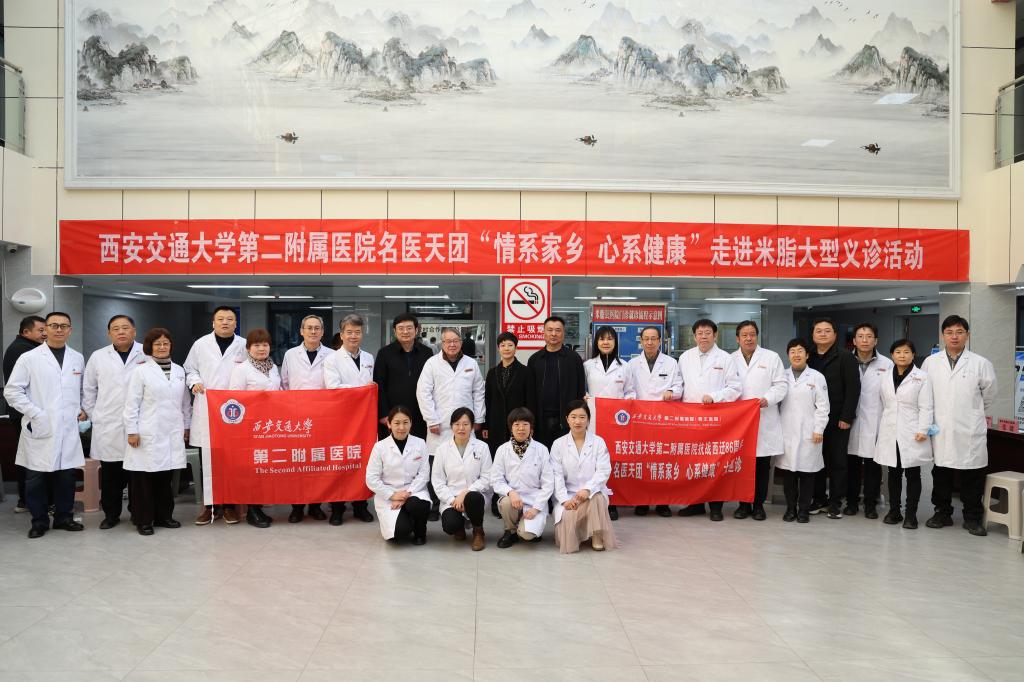 11月17日,西安交大二附院“情系家乡 心系健康”大巡诊活动走进中国小米之乡----榆林市米脂县。此次巡诊活动,由西安交通大学第二附属医院戴一副院长、消化内科王进海教授、党支部书记郭晓燕教授带队,携消化内科德高望重的老教授龚均教授、董蕾教授,以及老年呼吸内分泌主任李秀丽教授、血液内科副主任赵万红教授、心血管内科副主任邓捷教授、神经内科副主任张茹教授、胸外科张潍教授、血管外科主任马建仓教授、泌尿外科副主任张鹏教授、骨三科副主任张纯教授、妇产科副主任高艳娥教授、普外干四病区张健教授、儿科陈玺教授、消化内科史海涛副主任医师、姜炅主治医师、耳鼻喉科杨飞轮主治医师、消化内科杨会护士长、赵红莉副护士长、李雪荣副主任护师、骨关节外科陈媛媛副护士长等涵盖15个专业的25名专家护理团队为米脂县广大群众进行义诊咨询、护理查房及科普宣传等。