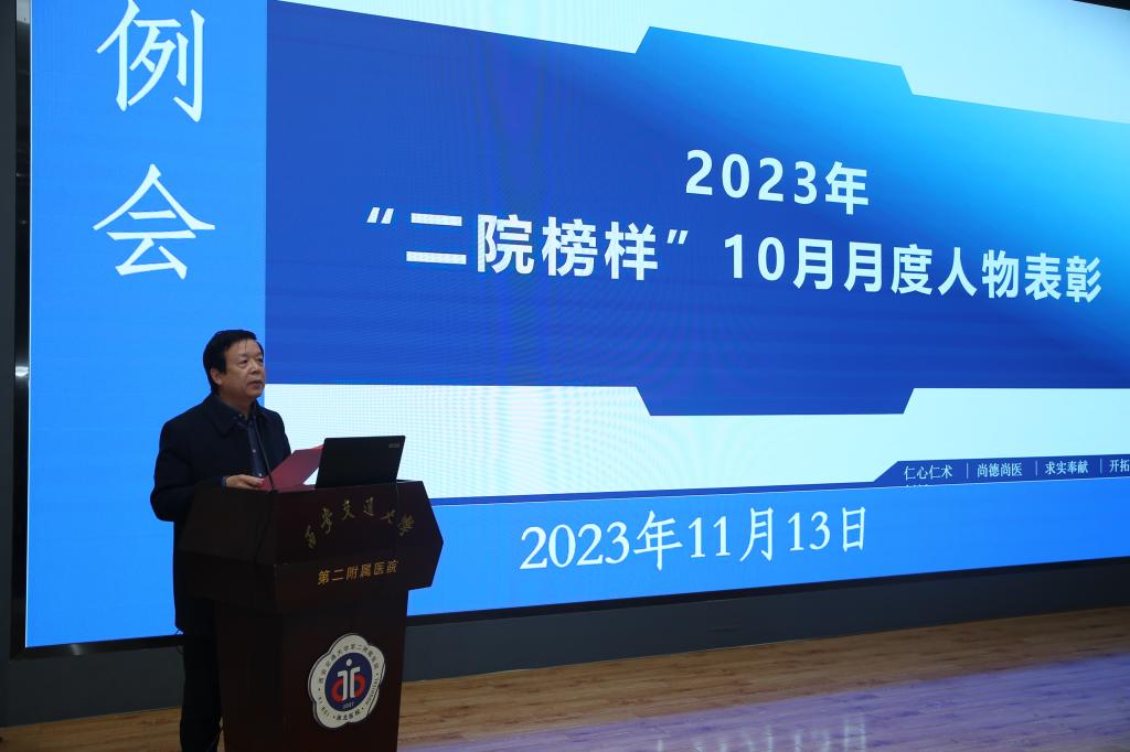 为弘扬先进,树立典型,激发广大教职工在奋进“339”、推动医院高质量发展进程中的积极性和创造性,在全院范围内形成“比学赶帮超”的良好工作氛围,11月13日下午,医院在南院多功能厅举行了2023年“二院榜样”10月月度人物表彰大会,大会由副院长张蓬勃主持。