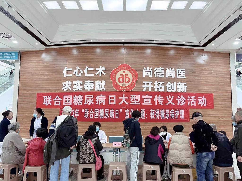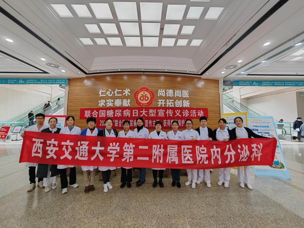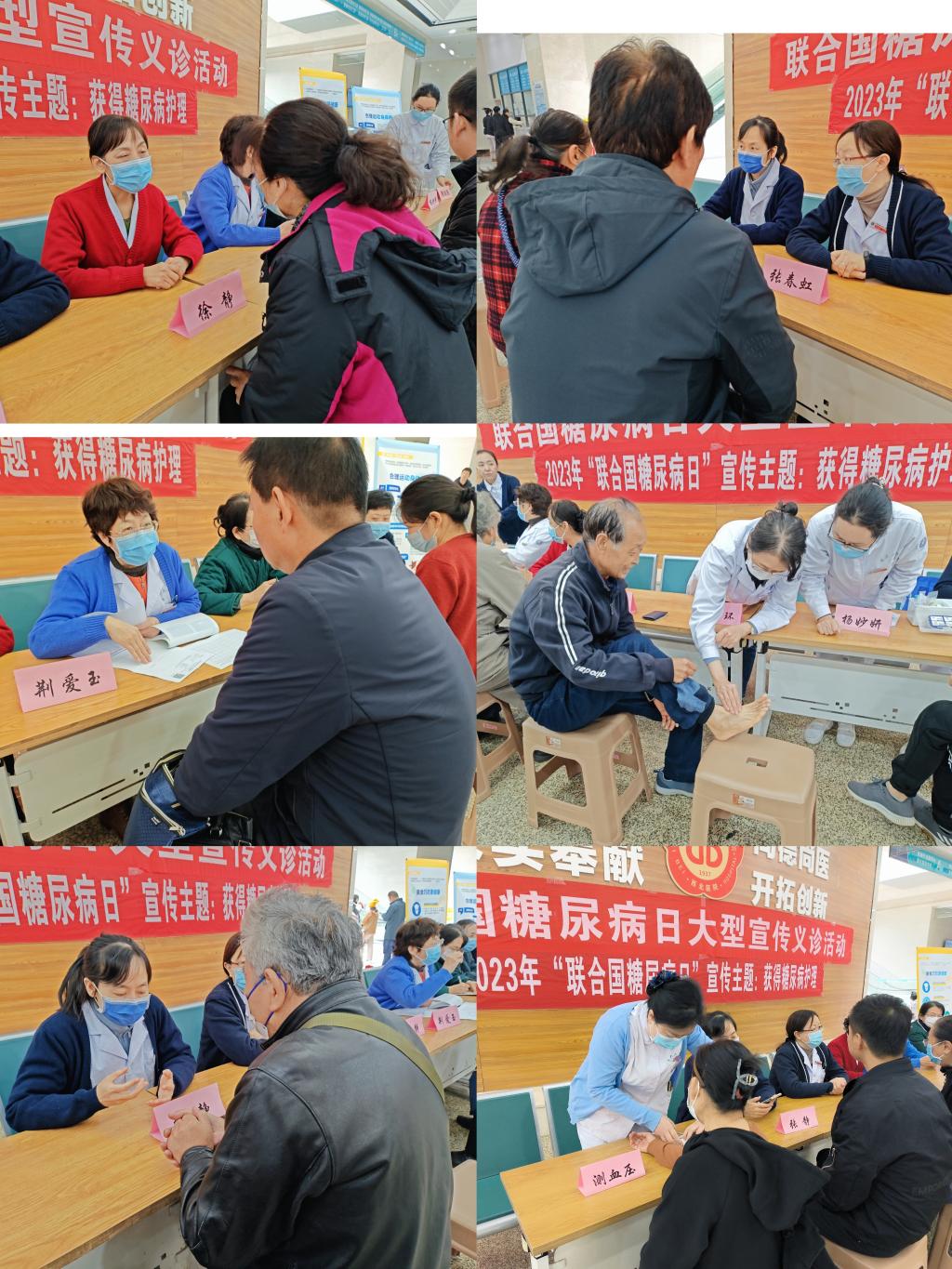2023年11月10日,我院内分泌代谢科举行了以“获得糖尿病护理”为主题的联合国糖尿病日系列活动,活动口号为:了解风险,了解应对。此次活动由内分泌代谢科党支部牵头,团支部积极协作。上午9时,在大明宫院区门诊一楼大厅,徐静主任、张春虹副主任、王玉环主任医师、荆爱玉主任医师、张静主治医师等共同参与,展开了义诊活动。针对内分泌系统常见疾病给予个体化的咨询与诊疗,为大众普及疾病相关知识。同时,内分泌代谢科护士长龙俊宏带领科室糖尿病专科护士为前来的患者测量血压、血糖,进行健康宣教,发放健康知识手册。共服务大众百余人次。