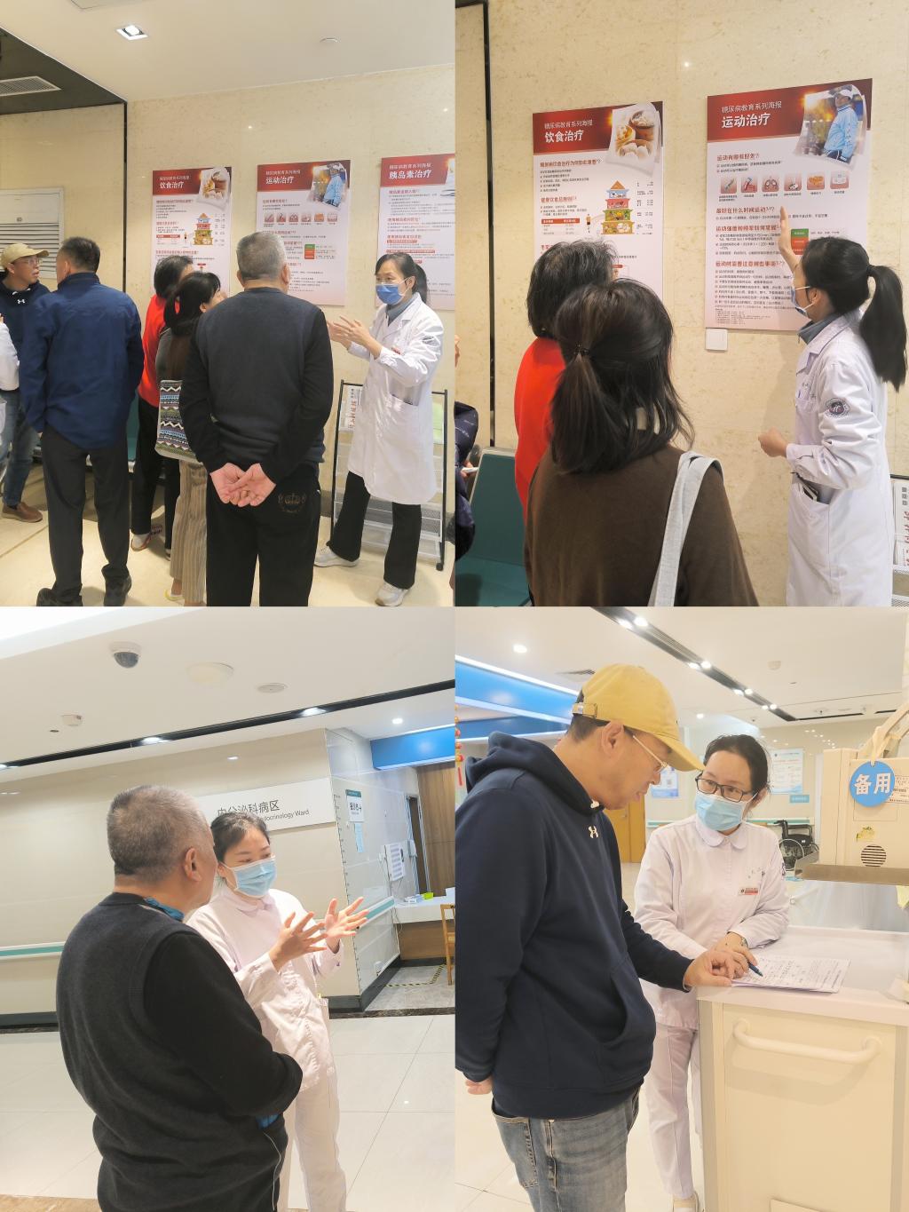 下午两点,在大明宫院区11楼内分泌代谢科住院部,医护人员带领患者进行了沉浸式健康宣教。带大家了解了糖尿病的风险,强调糖尿病相关并发症的影响,以及获取正确信息和护理以确保及时的治疗和管理至关重要。患者积极提问,收获了全面的健康知识,反馈良好。