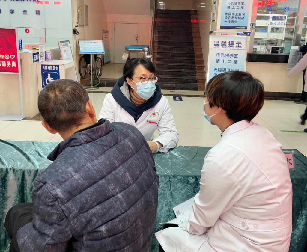 整个义诊过程,闻讯赶来的患者井然有序排队等候,现场氛围热烈,专家为群众免费诊治。肾病科副主任王莉教授、神经外科副主任曲友直教授、内分泌科张春虹教授等专家大咖们,详细了解前来就诊群众的健康情况,为前来就诊的群众提供了相关疾病诊疗和健康指导等医疗服务。他们认真听诊,热情耐心地询问群众身体健康状况、解答群众心中疑惑,对其症状进行相关讲解并给予医疗建议。