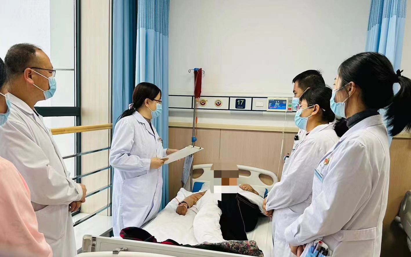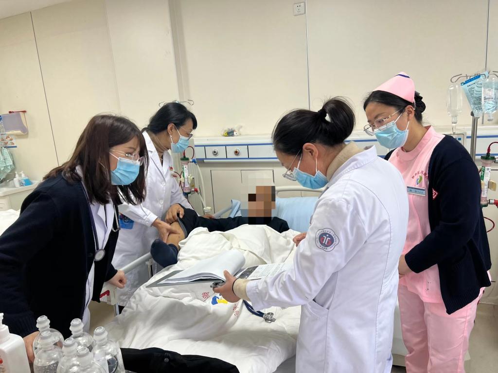 义诊结束后,肾病内科王莉教授、贾利宁教授、内分泌科张春虹教授、心血管内科王新宏教授、普外科尚皓医生分别在相应科室医生的陪同下进行教学查房活动,并针对查房的患者开展了疑难病例讨论,认真回答医护人员提出的问题。