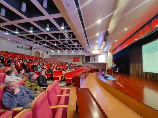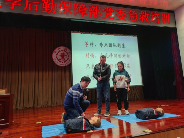 11月8日,心血管病院范博渊受邀走进我校,为后勤保障部校管干部、各部门主管、各工会组长及各单位服务师生的一线员工带去了一场“沉浸式”应急救护健康知识讲座。