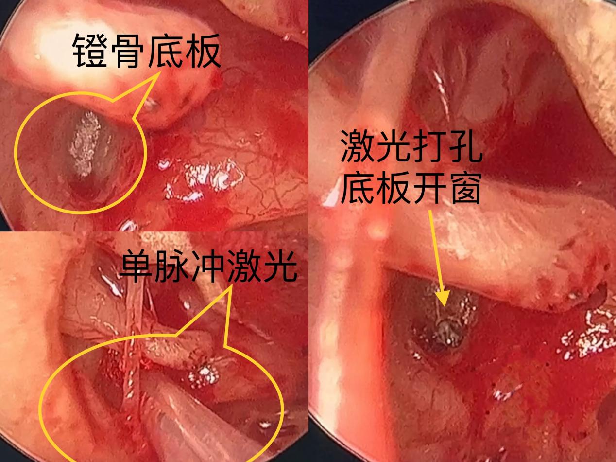 耳硬化症是一种特发于内耳骨迷路的骨代谢疾病,临床表现为传导性聋,进展后可累及耳蜗,发展为混合性聋。手术是耳硬化症的首选治疗方法。传统三棱针手动钻孔容易出现底板浮动、骨折、下沉等并发症,CO2激光通过高能量密度,可做到精确定位、创伤小等效果,明显减少术后并发症。