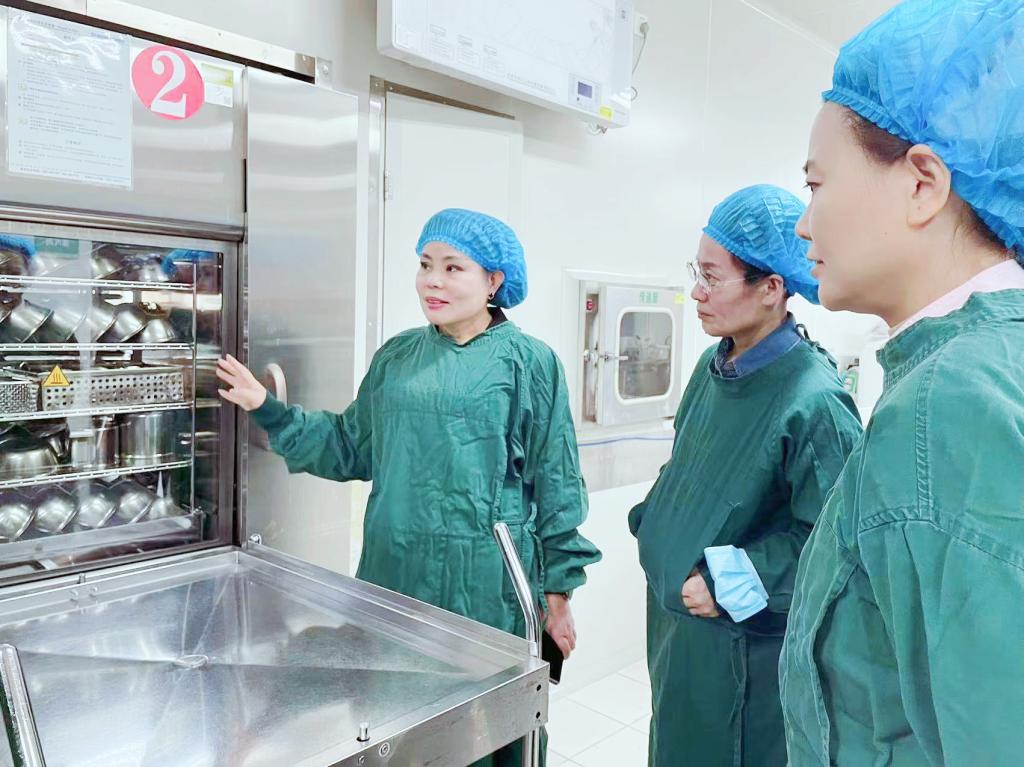 消毒供应科主任司慧君查看了消毒供应中心整体布局流程、高低温灭菌监测记录及相关科室业务培训记录等质控工作,并给予专业指导建议。手术室护士长赵丽燕查看了手术室布局流程、无菌物品管理及手术室质控工作并提出指导建议。干三护士长李领侠在消化内分泌科病区与医护人员就糖尿病的健康教育与专科护理进行了深入交流。神外护士长徐岁云与县医院神外护士长作了深度交流并赠送了健康管理书。护理团队也均表达了与县医院在组织护理查房、疑难病例讨论、PICC穿刺等方面建立更深交流的意愿,融洽的气氛为以后的联合发展打下了良好基础。