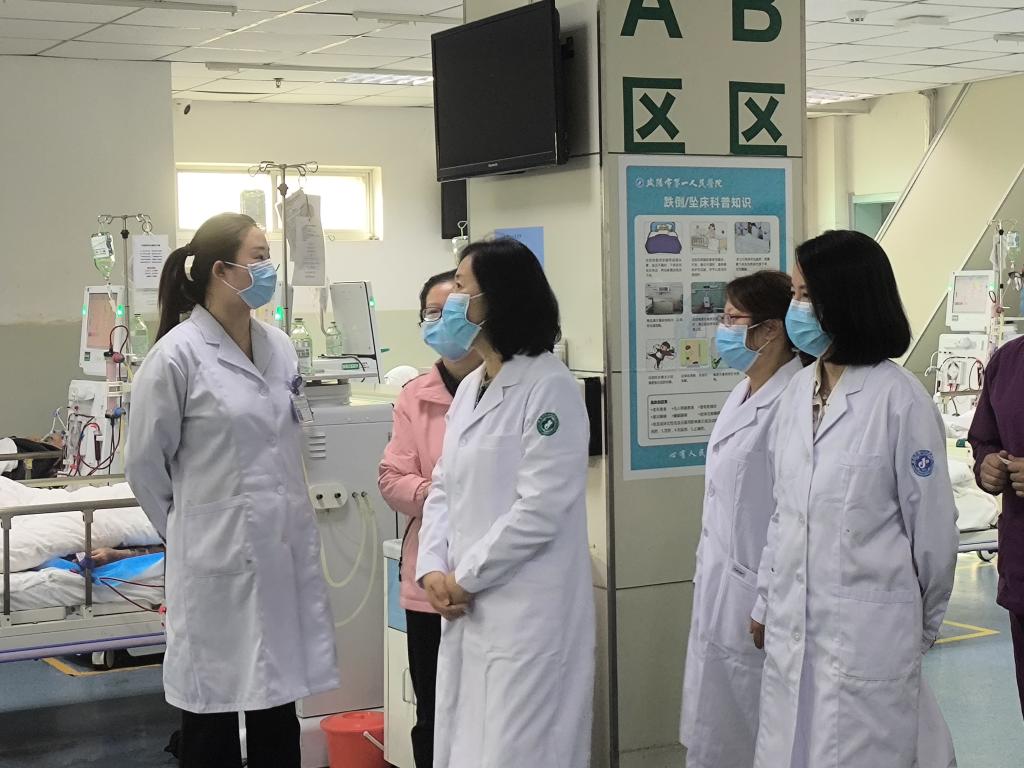 参加此次巡诊的有肾病科主任付荣国主任医师、肾病重症组组长王莉主任医师、腹膜透析组组长陈钊副主任医师、肾脏病理组马晓桃医师、肾脏介入组魏士卓医师、腹膜透析专科护士马芳霞主管护师。