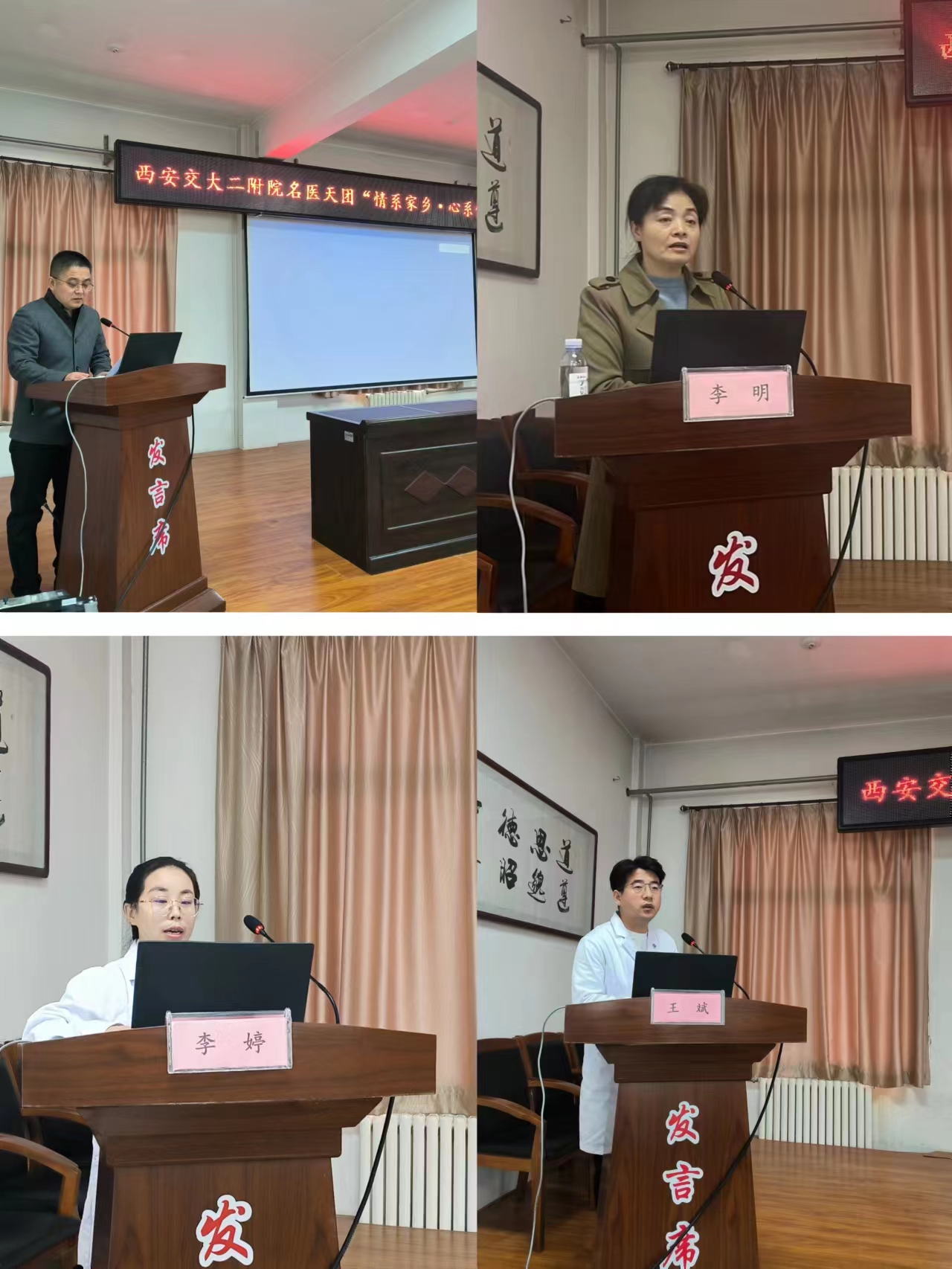 首先,淳化县医院仇院长对我院组织这次活动的意义表示了极大的肯定,希望能以此活动为桥梁,紧密连接两院之间的交流合作,并对医疗队成员表示热烈的欢迎。领队宋教授介绍了此次活动内容包括知识讲座、医疗查房、业务交流和赠送爱心大礼包等,他表示希望以本次活动为契机,在以后的工作中能够和县医院加强交流合作,共享资源与知识,共同为提升家乡的医疗服务水平贡献力量。接着,李明副主任与大家分享医院等级评审与病案质量管理的相关知识;李婷医师与大家分享了2022年版《慢性乙型肝炎防治指南》更新要点及解读;王斌康复治疗师跟大家分享交流了《脑卒中的康复原则和管理策略》;培训后,老师们分组深入临床各科室与县医院同仁进一步交流学习。