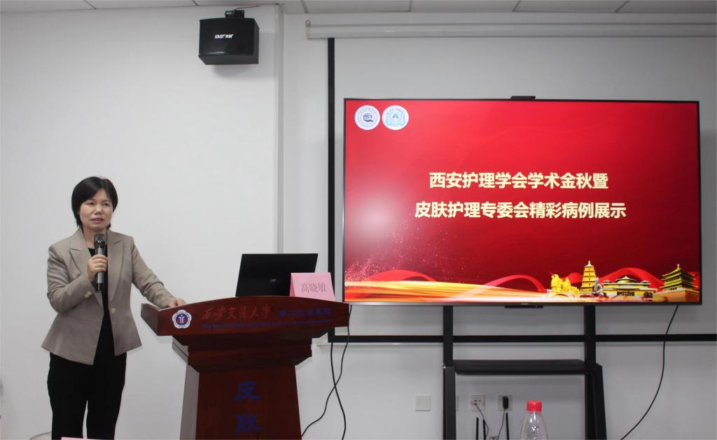 为了聚焦临床,促进护士学习交流探讨临床护理问题,提高专科护理水平,在皮肤专委会主委高晓敏护士长的组织下,西安护理学会“学术金秋”暨皮肤护理专委会精彩病例展示,于2023年11月3日下午,在西安交通大学第二附属医院皮肤科示教室如期举行,会议采用线下+线上的形式。西安交通大学第二附属医院皮肤科高晓敏护士长和安金刚副教授、西安交通大学第一附属医院皮肤科周英丽护士长、陕西省中医研究医院皮肤科燕林霞护士长、西安市中心医院烧伤整形科潘艳护士长等担任点评嘉宾,西安交通大学第二附属医院皮肤科孔淑贞副护士长主持。