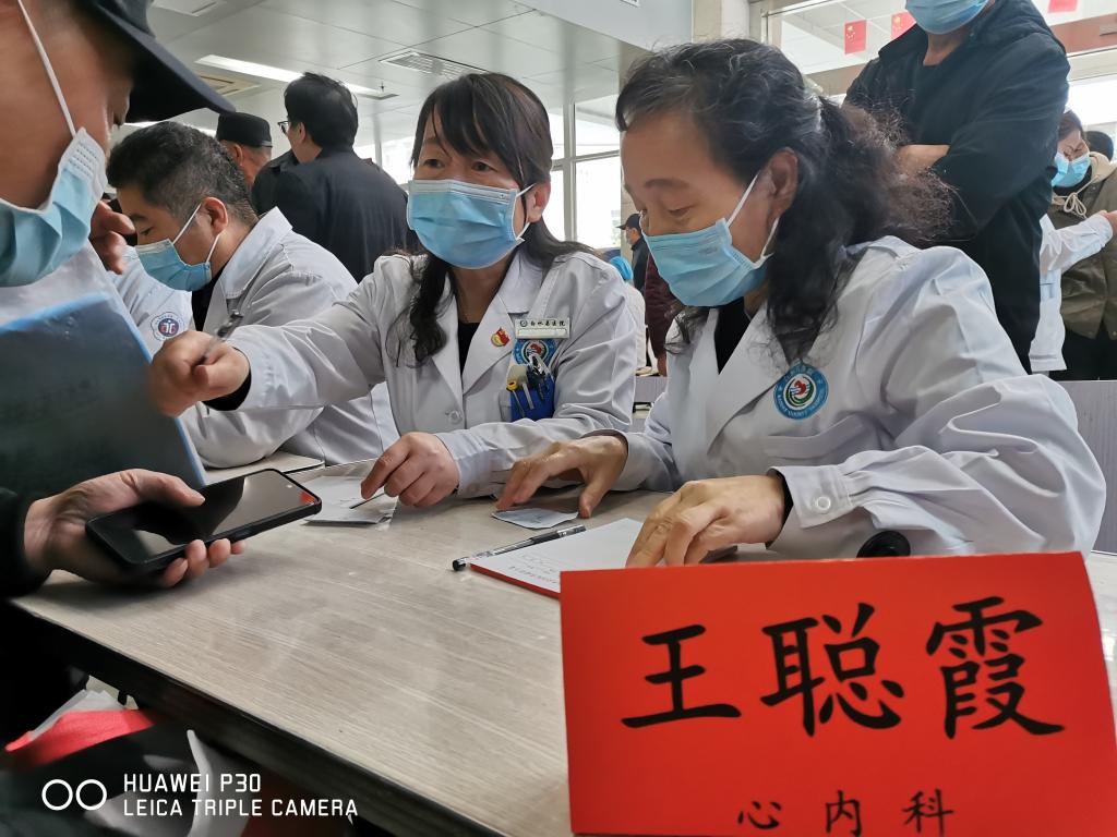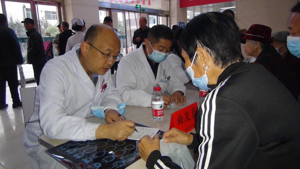 仪式结束后,大家迅速投入各自工作中。来自心内科王聪霞教授,神经外科曲友直教授,老年呼吸内分泌科权晓娟教授,麻醉科赵亚琴教授,血液科张鹏宇教授,皮肤科冯义国教授,全科医学科王哲医师,消化内科邓玉皎医师,神经内科郭学军护师认直接待络绎不绝前来咨询的乡亲们,详细解答他们及其家属的疑问,针对患者具体状况,为其进行健康宣教、合理化就诊建议和用药指导,为患者提供切实可行的治疗方案。专家们真诚的态度,精湛的医疗技术,严谨的作风,受到接诊群众的一致赞誉。