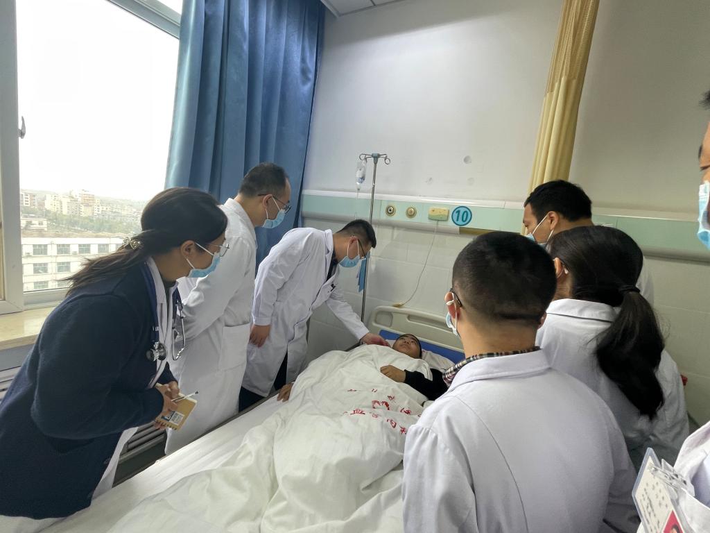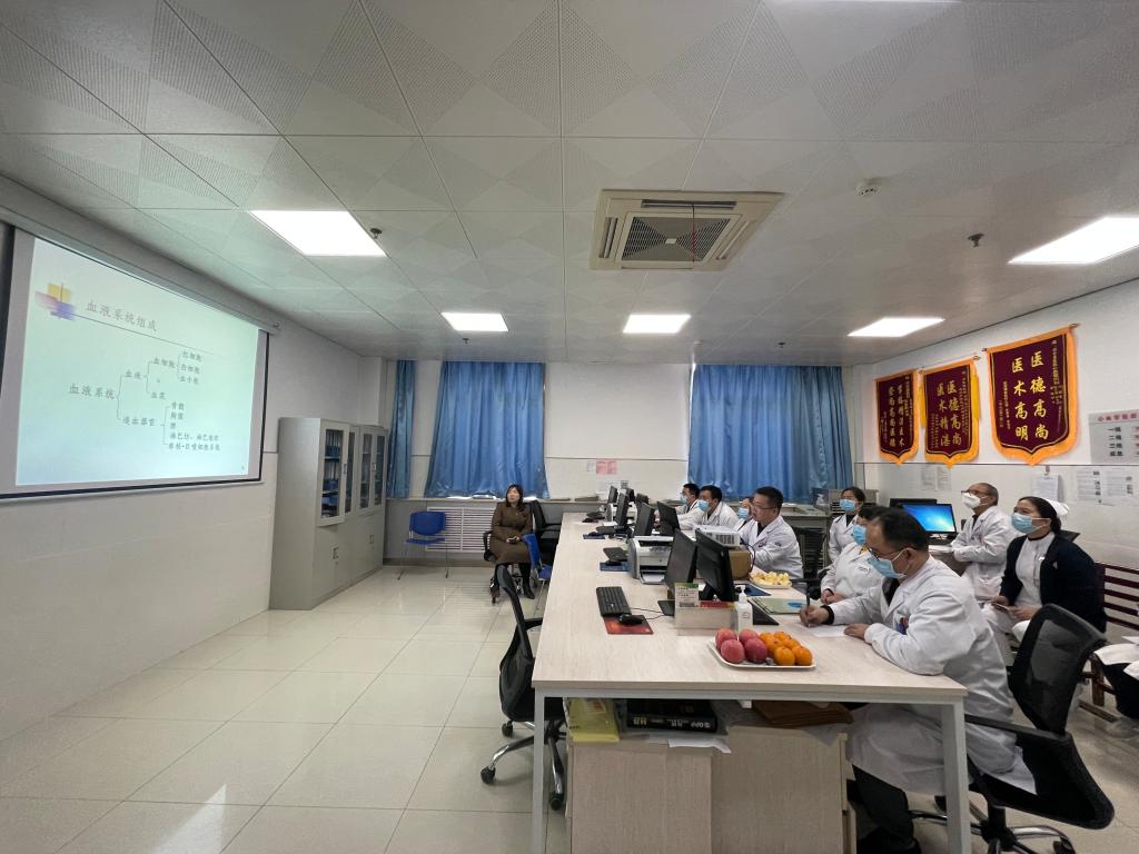赵亚琴教授、郭学军专科护师现场查看县医院院手麻科的布局、设施设备,并针对手麻科目前存在的薄弱环节提出了宝贵的意见,并对疑难病例进行讨论。曲友直教授在义诊间隙至外科病房进行教学查房,并向院领导提出学科建设的发展意见。张鹏宇教授以《血液系统疾病及病例分析》为主题从血液病的检查、病症发展的进程、病症开始出现的表现、病症筛查与诊断、干预治疗等几个方面进行讲座,分享学科前沿信息和自己的工作心得,同时通过带教查房的方式进行交流指导,为患者制定治疗方案。