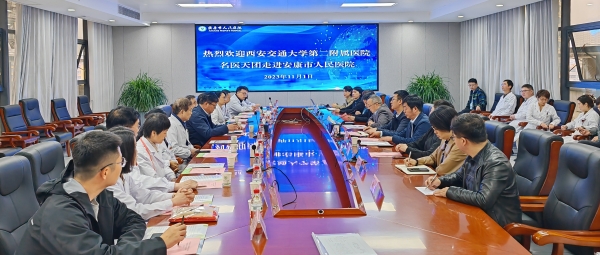 为促进优质医疗资源下沉,提高区域综合诊疗水平,切实提高人民群众健康水平,值此西安交通大学第二附属医院建院86周年之际,11月1日,我院工会主席陈海文带领普外科、骨科、泌尿外科、妇产科、心血管内科、神经内科、肾病内科、耳鼻咽喉科、肿瘤放疗科、检验科、超声科等多学科专家一行13人走进安康市人民医院开展大巡诊活动。