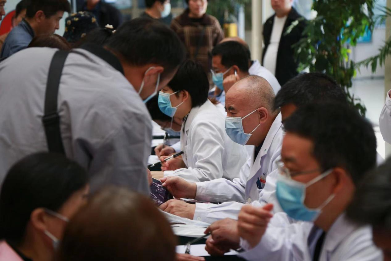义诊现场,慕名前来的患者早早在医院走廊内排起长队,各位专家分别在对应的科室为患者应诊。