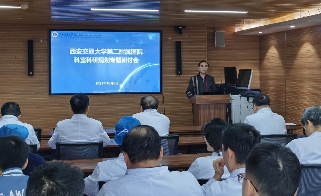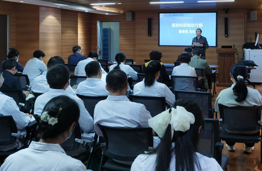 各科室主任通过对本学科科研情况的梳理,制定了详实具体的提升举措。如心内科提出要培养学术骨干,用好“临时科研岗”制度。感染科提出建立慢性肝病的精准个体化治疗及慢病管理规范,以临床研究项目促进学科全面发展。呼吸科提出加快生物样本库及组学数据库建设,充分利用呼吸专科大数据平台,加强临床科研并推进医工交叉研究。皮肤科提出要凝练传统研究方向,聚焦交叉研究领域,推进完成理论、研究及转化方面的新成果。神经内科提出以非急性闭塞再通作为突破口,提高临床与基础研究的质量。移植外科提出要基于临床问题提出科研思路,用好交叉研究实现借道超车。肿瘤科提出利用陕西省卫健委“破壁计划”乳腺癌中心及陕西省中西医结合肿瘤防治重点实验室的建设,形成以临床为导向,以疾病为链条,打破产学研壁垒的一体化特色研究体系。血液内科提出持续加强血液病的新技术-细胞免疫治疗技术攻关,不断提高研究深度和广度。骨关节科提出与国内骨科顶级医院建立战略合作伙伴关系,开展联合研究项目;并设立青年人才培养计划,为年轻研究者提供科研项目和培训机会。