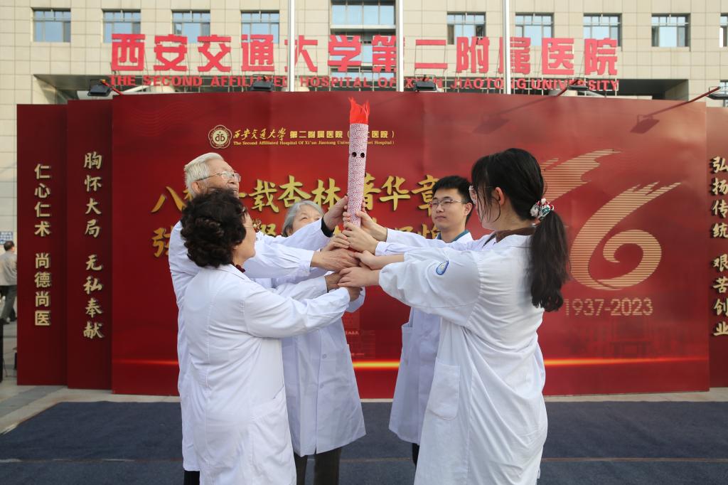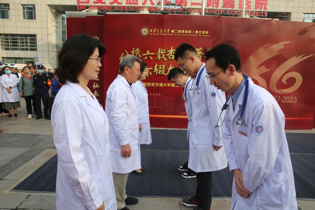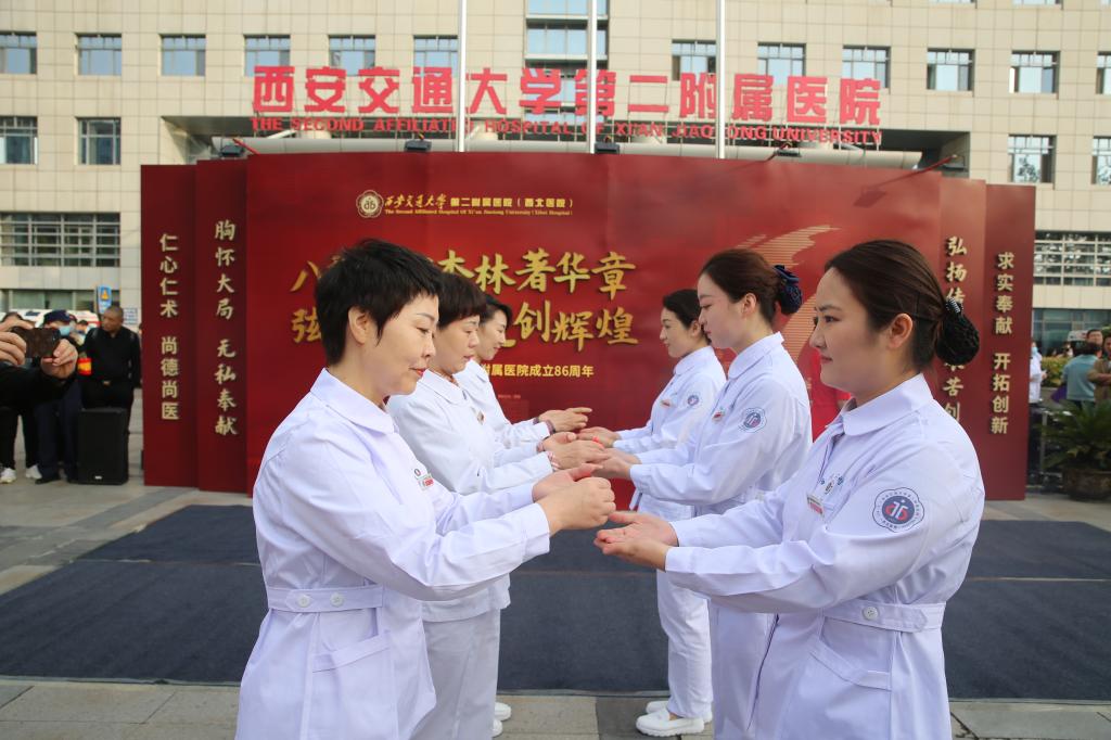 沧海桑田树传奇,淬火成金铸华章。10月26日上午,西安交通大学第二附属医院在门诊综合大楼前隆重举行“大医精诚薪火传承”86周年院庆仪式。医院领导、老专家、在职教工代表,学生代表、离退休职工代表100余人参加仪式。
